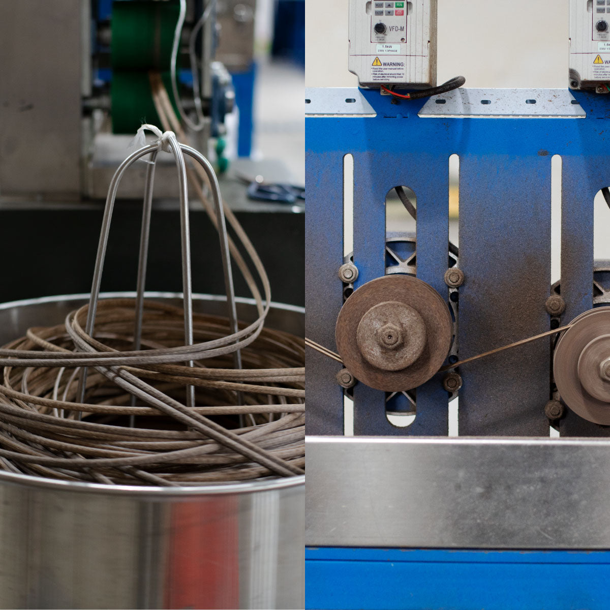 La machine fait fondre les granulés, puis extrude la matière en corde, ou « Osiers ».