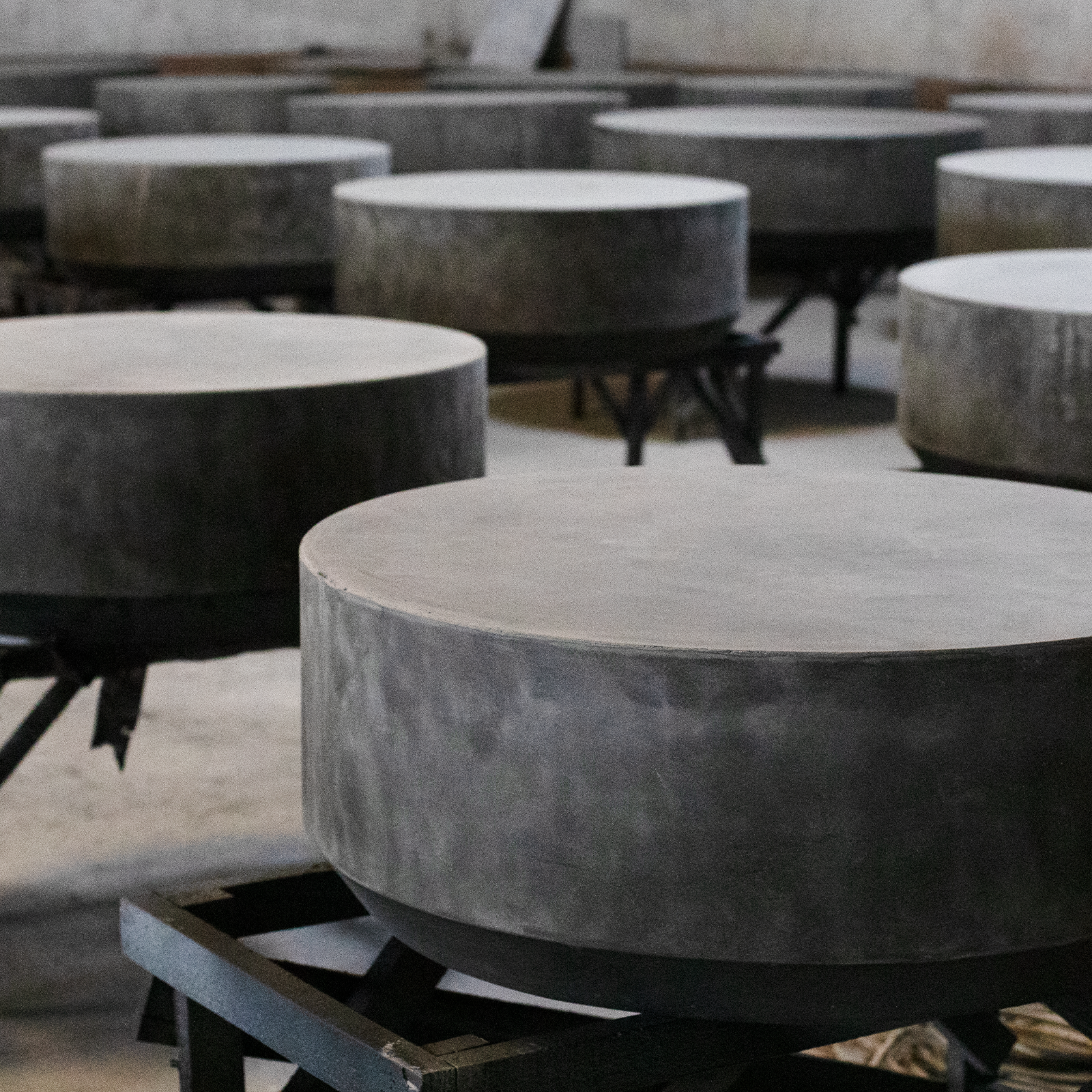 Coulé à la main dans des moules, Louis Osier Co. prend une base de béton traditionnelle et la mélange avec des composés fibreux pour réduire le poids.