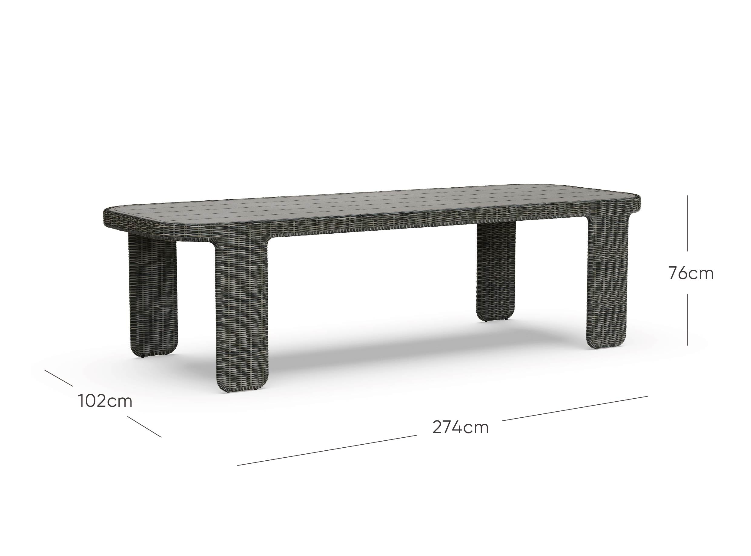 La résine tissée à la main est disponible dans notre finition frêne signature. Le PEHD et les pigments de couleur sont mélangés, extrudés et finis sur mesure selon une méthode qui imite visuellement et texturalement l'osier naturel.