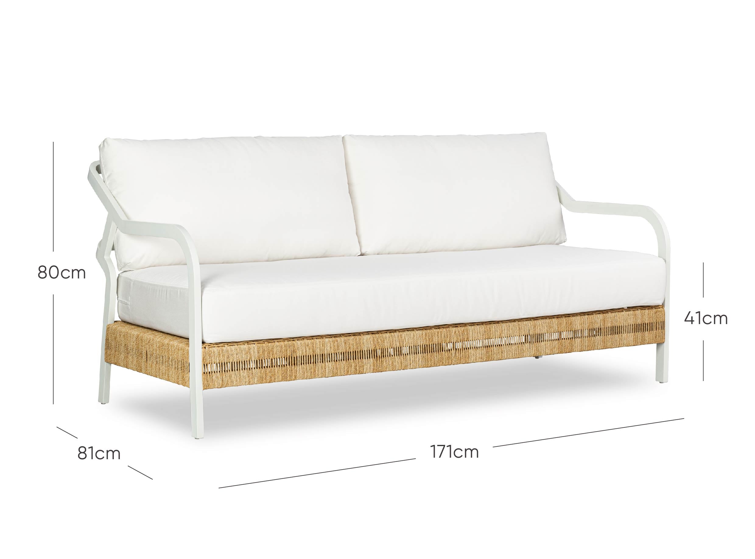 Le coussin d'assise est composé d'une mousse à cellules ouvertes enveloppée de Dacron, ce qui permet à l'eau de circuler et de s'écouler. Le coussin de dossier est garni d'un mélange de mousse, de polyester et de Dacron pour conserver sa forme au fil du temps.