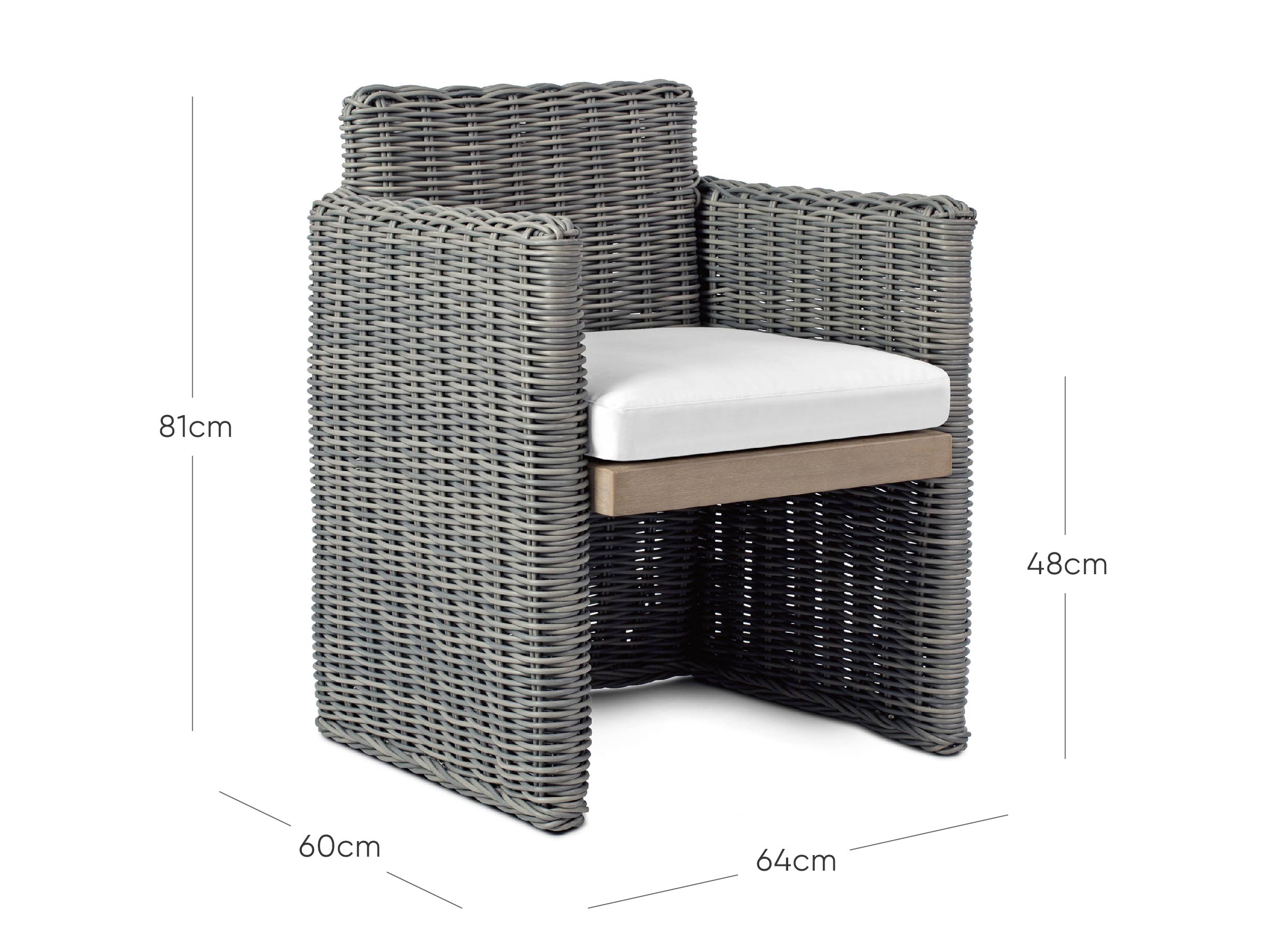 Le coussin d'assise est composé d'une mousse à cellules ouvertes enveloppée de Dacron, ce qui permet à l'eau de circuler et de s'écouler. Le coussin de dossier est garni d'un mélange de mousse, de polyester et de Dacron pour conserver sa forme au fil du temps.