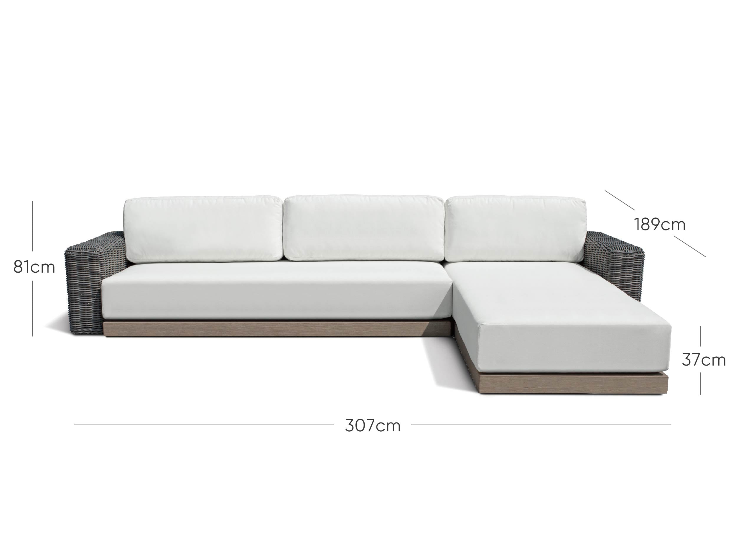 Le coussin d'assise est composé d'une mousse à cellules ouvertes enveloppée de Dacron, ce qui permet à l'eau de circuler et de s'écouler. Le coussin de dossier est garni d'un mélange de mousse, de polyester et de Dacron pour conserver sa forme au fil du temps.