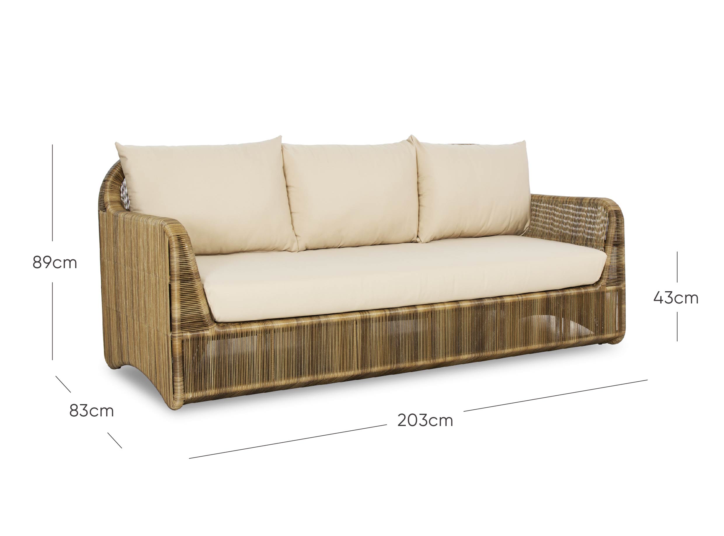 Le coussin d'assise est composé d'une mousse à cellules ouvertes enveloppée de Dacron, ce qui permet à l'eau de circuler et de s'écouler. Le coussin de dossier est garni d'un mélange de mousse, de polyester et de Dacron pour conserver sa forme au fil du temps.