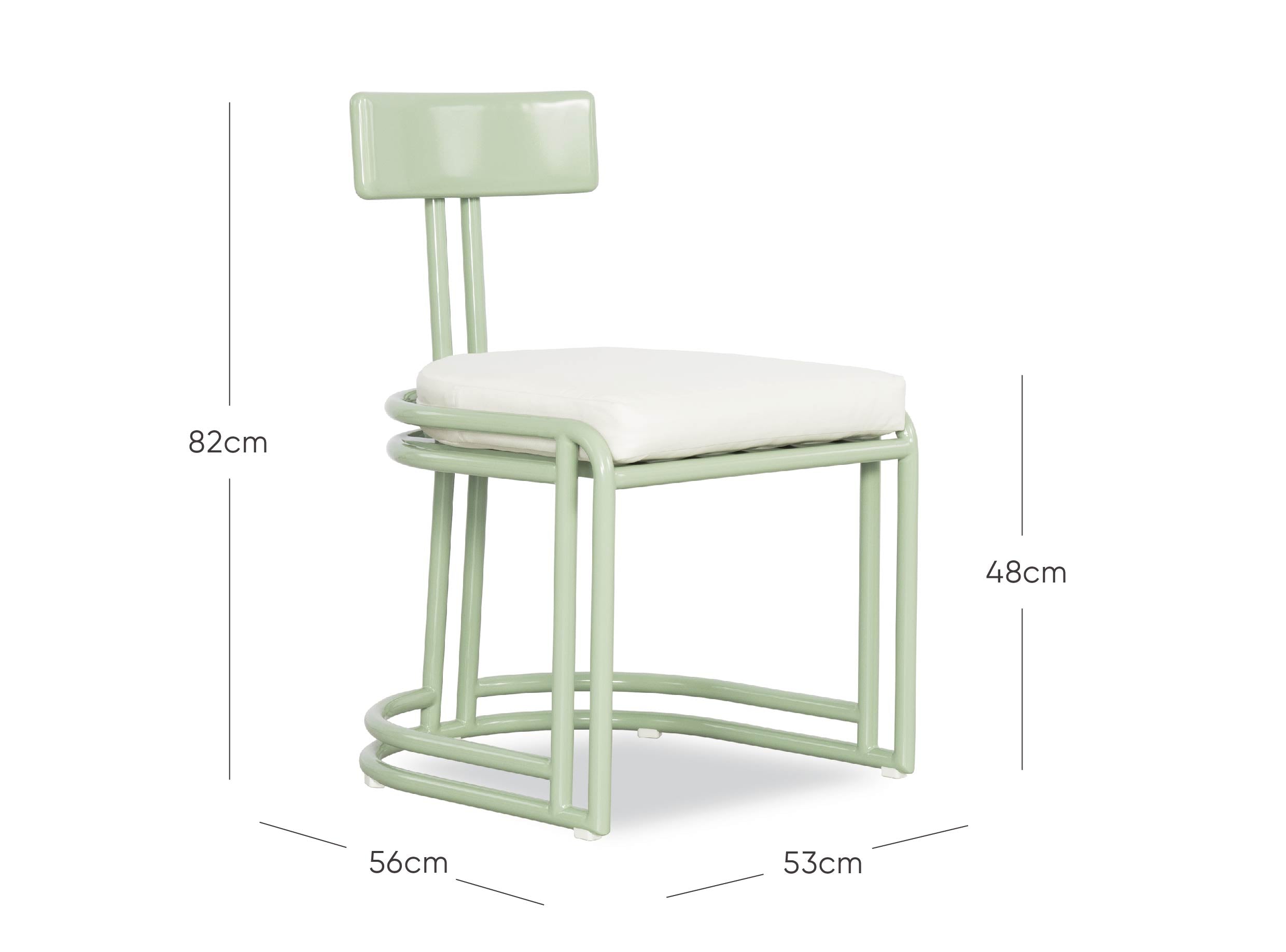 Le coussin d'assise est composé d'une mousse à cellules ouvertes enveloppée de Dacron, ce qui permet à l'eau de circuler et de s'écouler. Le coussin de dossier est garni d'un mélange de mousse, de polyester et de Dacron pour conserver sa forme au fil du temps.