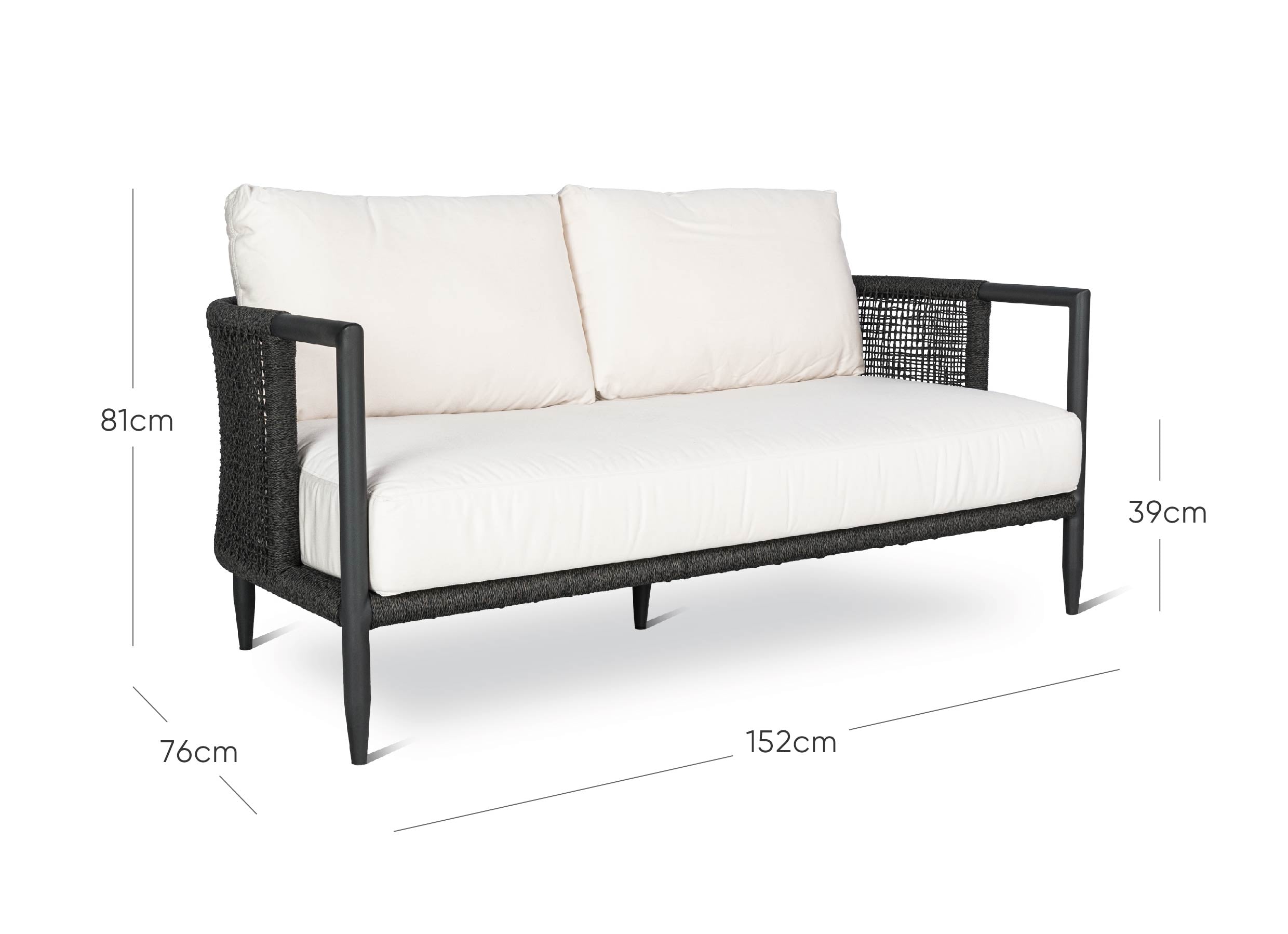 Le coussin d'assise est composé d'une mousse à cellules ouvertes enveloppée de Dacron, ce qui permet à l'eau de circuler et de s'écouler. Le coussin de dossier est garni d'un mélange de mousse, de polyester et de Dacron pour conserver sa forme au fil du temps.