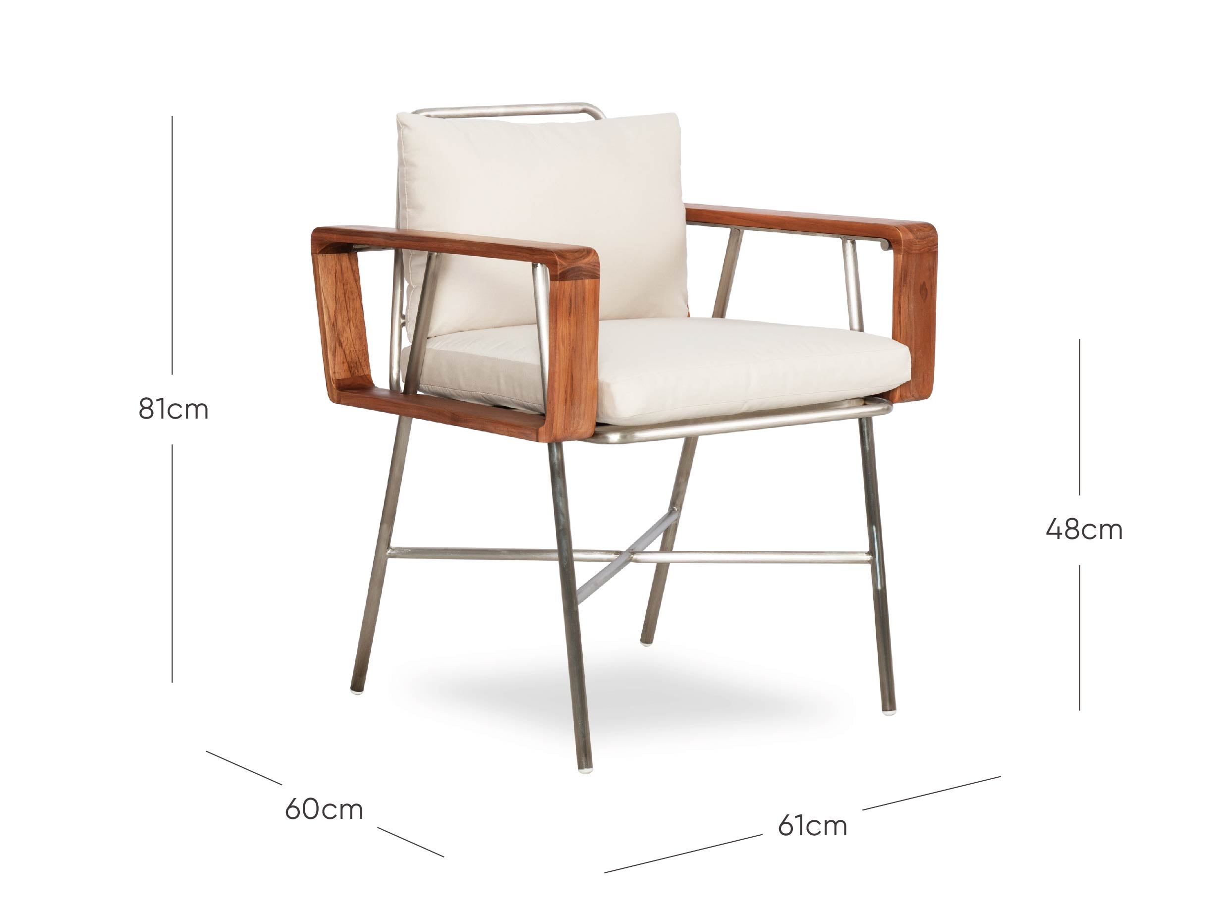 Le coussin d'assise est composé d'une mousse à cellules ouvertes enveloppée de Dacron, ce qui permet à l'eau de circuler et de s'écouler. Le coussin de dossier est garni d'un mélange de mousse, de polyester et de Dacron pour conserver sa forme au fil du temps.