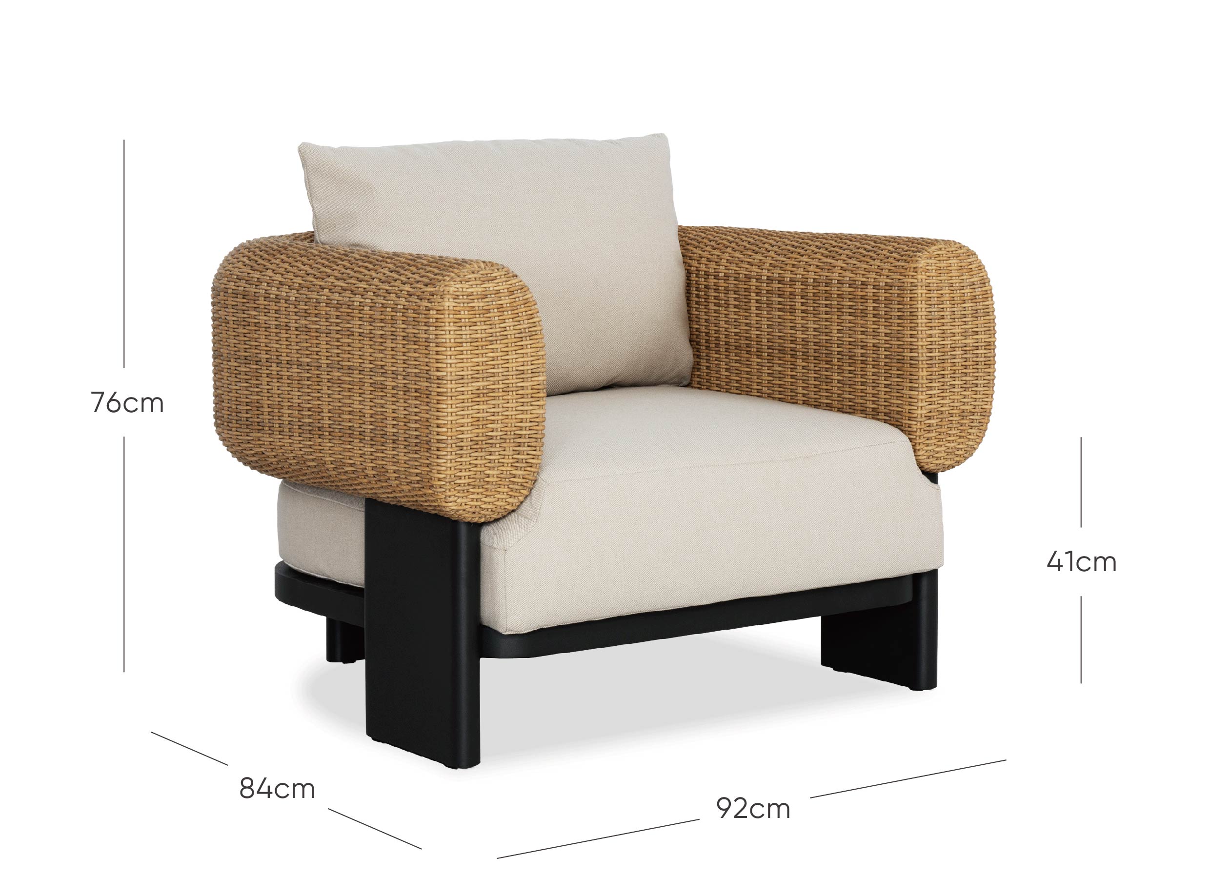 Le coussin d'assise est composé d'une mousse à cellules ouvertes enveloppée de Dacron, ce qui permet à l'eau de circuler et de s'écouler. Le coussin de dossier est garni d'un mélange de mousse, de polyester et de Dacron pour conserver sa forme au fil du temps.