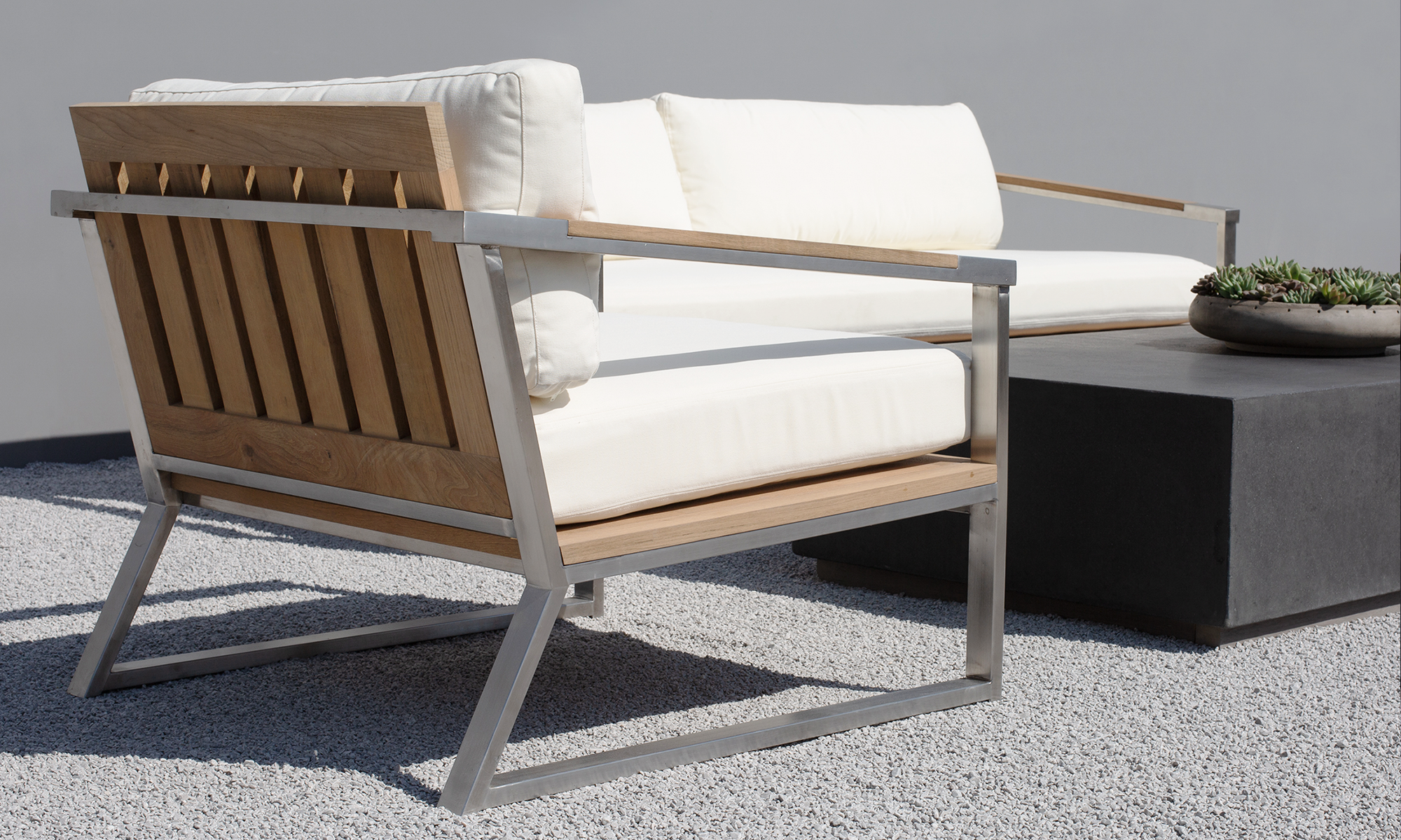 Le coussin d'assise est composé d'une mousse à cellules ouvertes enveloppée de Dacron, ce qui permet à l'eau de circuler et de s'écouler. Le coussin de dossier est garni d'un mélange de mousse, de polyester et de Dacron pour conserver sa forme au fil du temps.