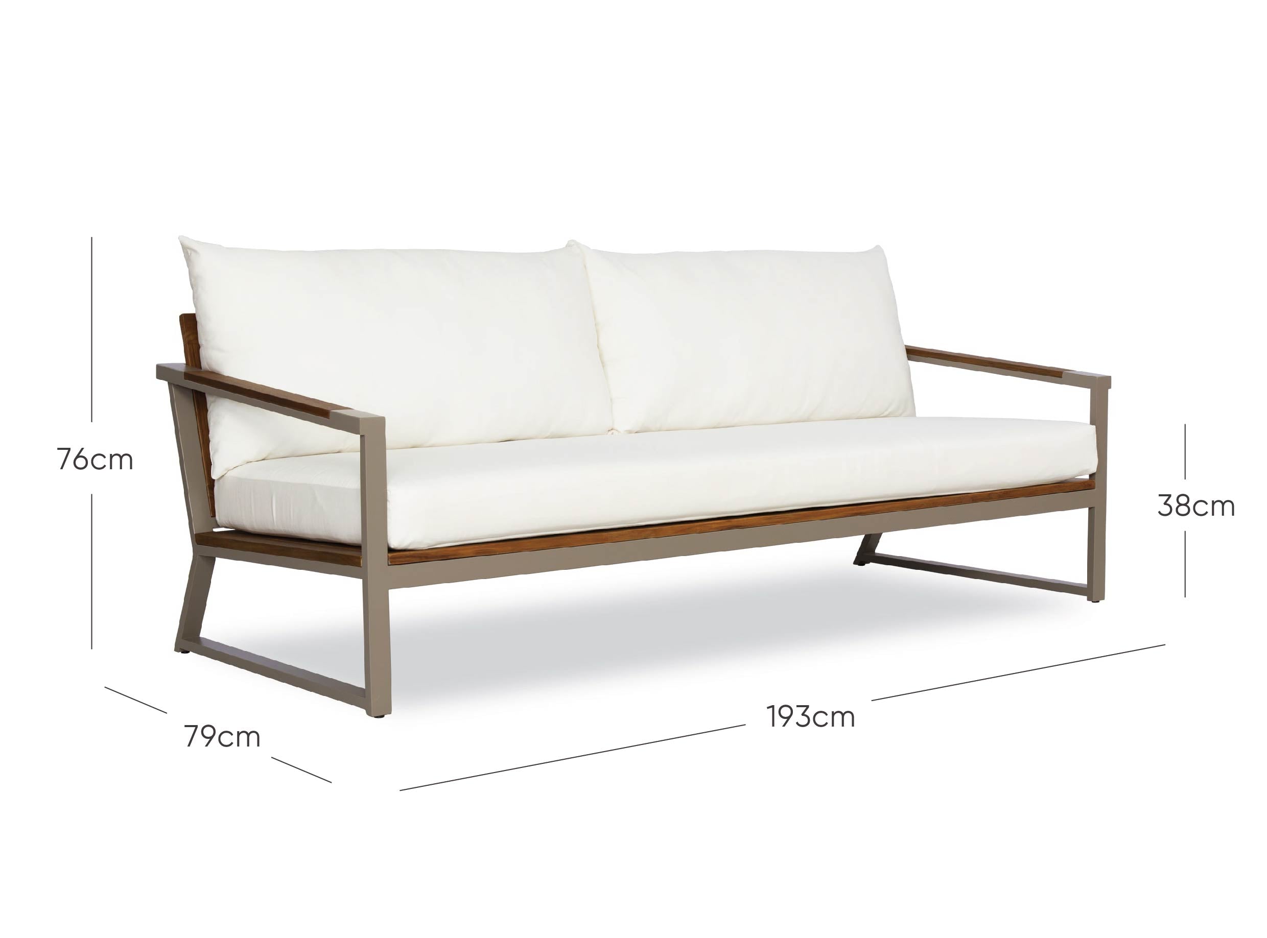 Le coussin d'assise est composé d'une mousse à cellules ouvertes enveloppée de Dacron, ce qui permet à l'eau de circuler et de s'écouler. Le coussin de dossier est garni d'un mélange de mousse, de polyester et de Dacron pour conserver sa forme au fil du temps.