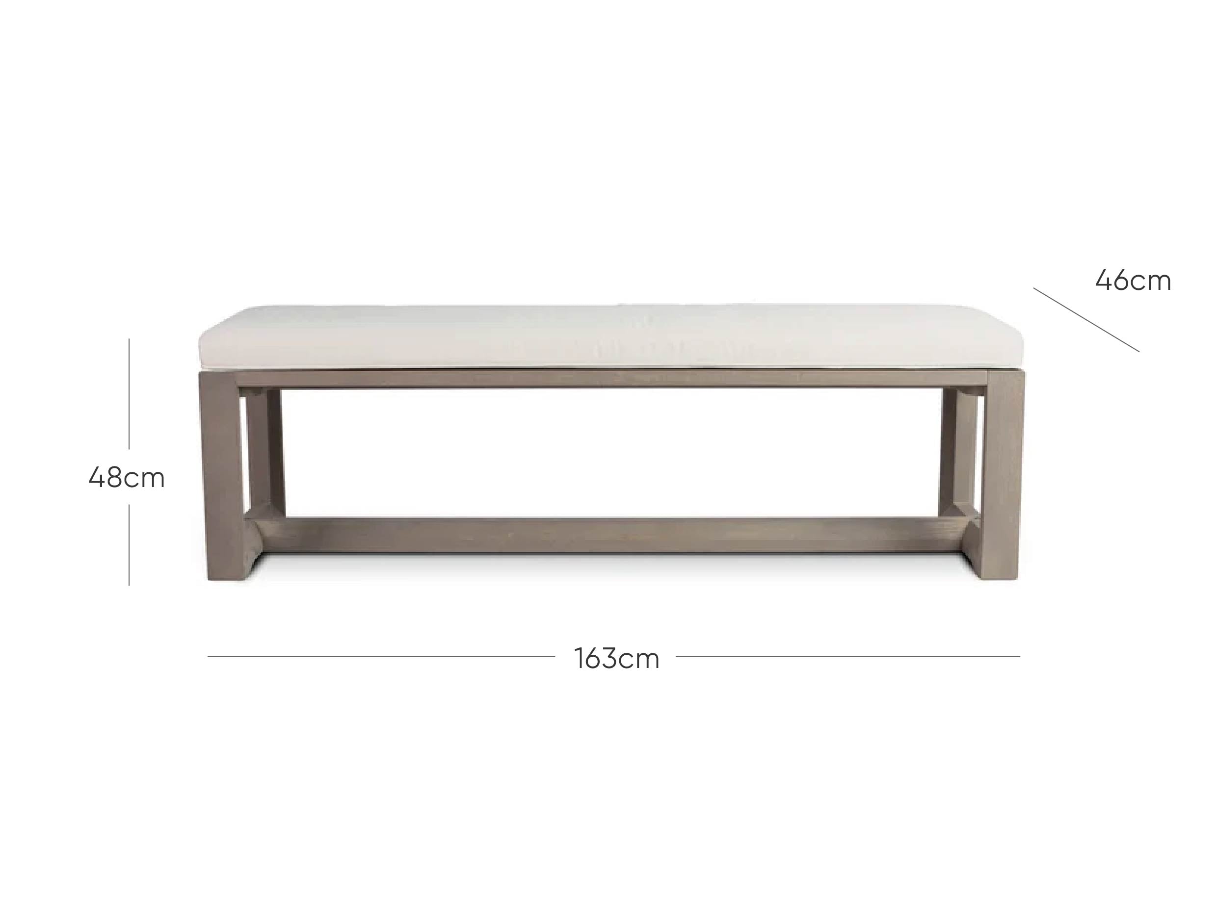 Le coussin d'assise est composé d'une mousse à cellules ouvertes enveloppée de Dacron, ce qui permet à l'eau de circuler et de s'écouler. Le coussin de dossier est garni d'un mélange de mousse, de polyester et de Dacron pour conserver sa forme au fil du temps.