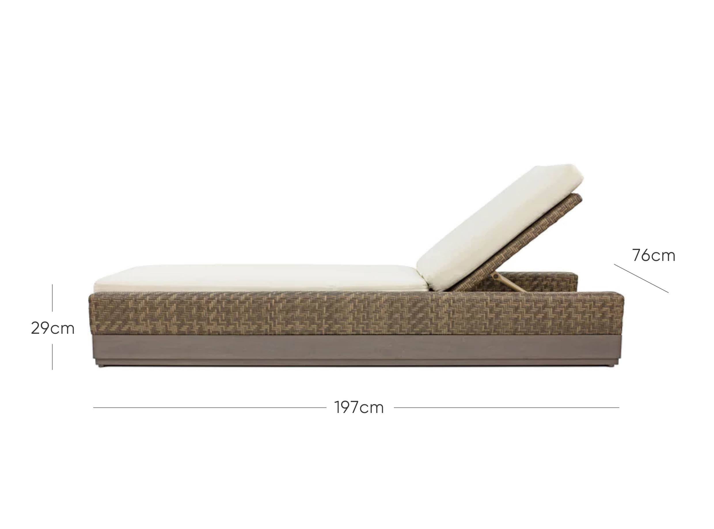 Le coussin d'assise est composé d'une mousse à cellules ouvertes enveloppée de Dacron, ce qui permet à l'eau de circuler et de s'écouler. Le coussin de dossier est garni d'un mélange de mousse, de polyester et de Dacron pour conserver sa forme au fil du temps.