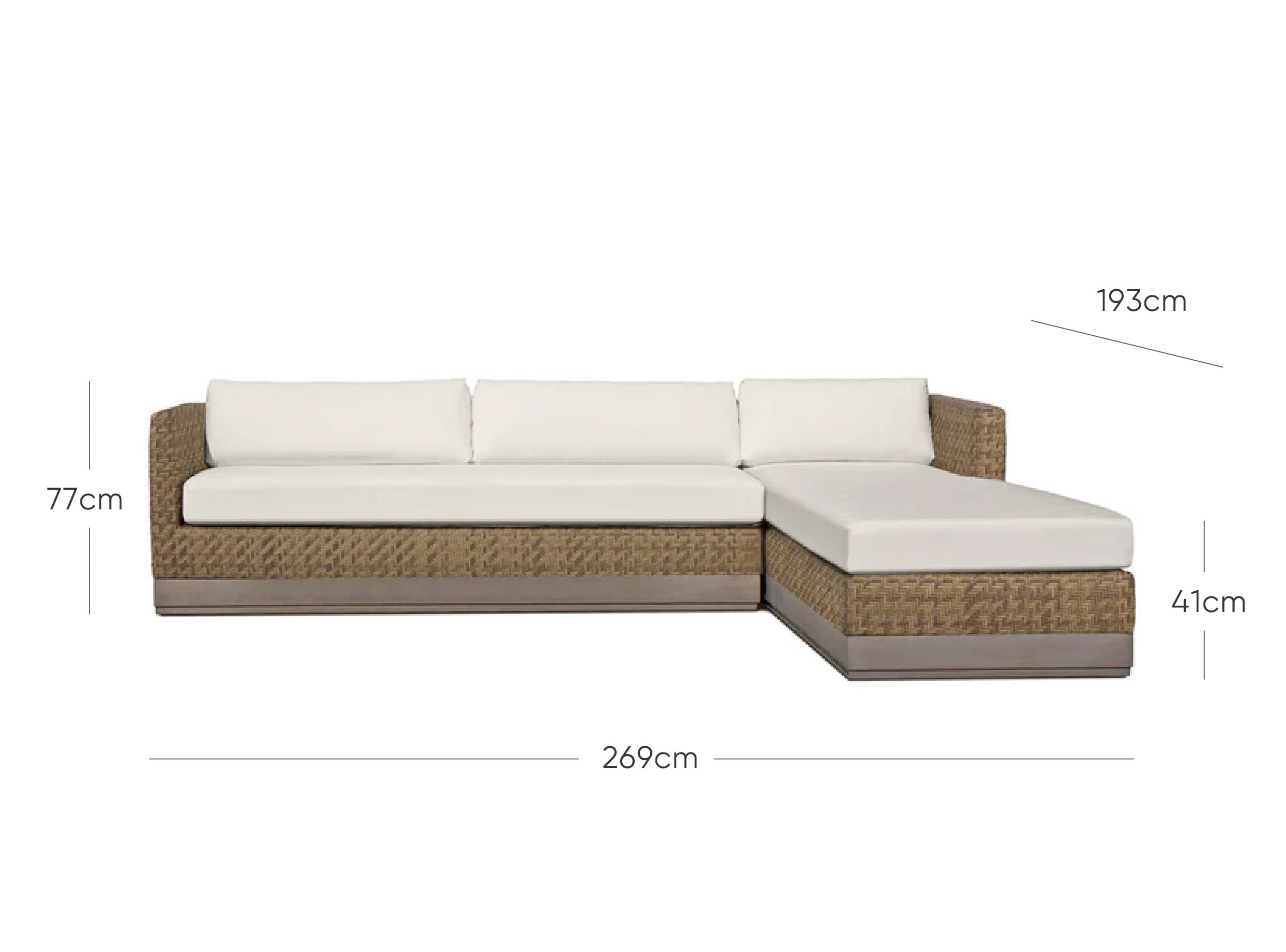 Le coussin d'assise est composé d'une mousse à cellules ouvertes enveloppée de Dacron, ce qui permet à l'eau de circuler et de s'écouler. Le coussin de dossier est garni d'un mélange de mousse, de polyester et de Dacron pour conserver sa forme au fil du temps.