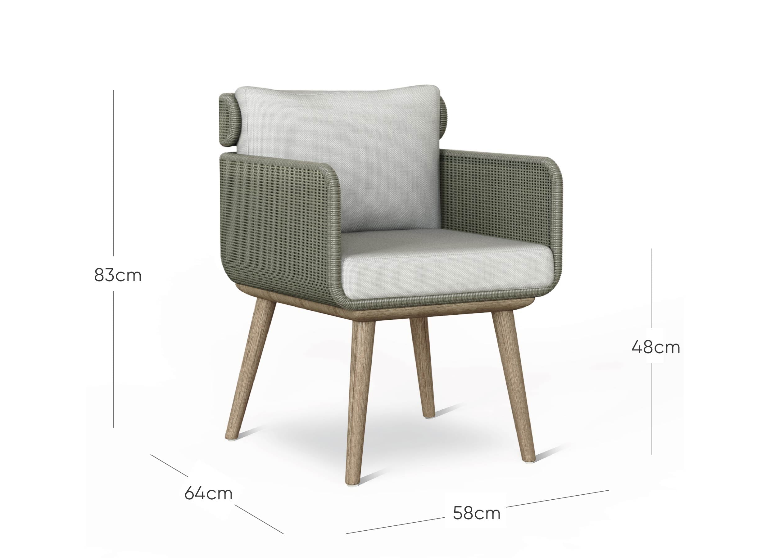 Le coussin d'assise est composé d'une mousse à cellules ouvertes enveloppée de Dacron, ce qui permet à l'eau de circuler et de s'écouler. Le coussin de dossier est garni d'un mélange de mousse, de polyester et de Dacron pour conserver sa forme au fil du temps.