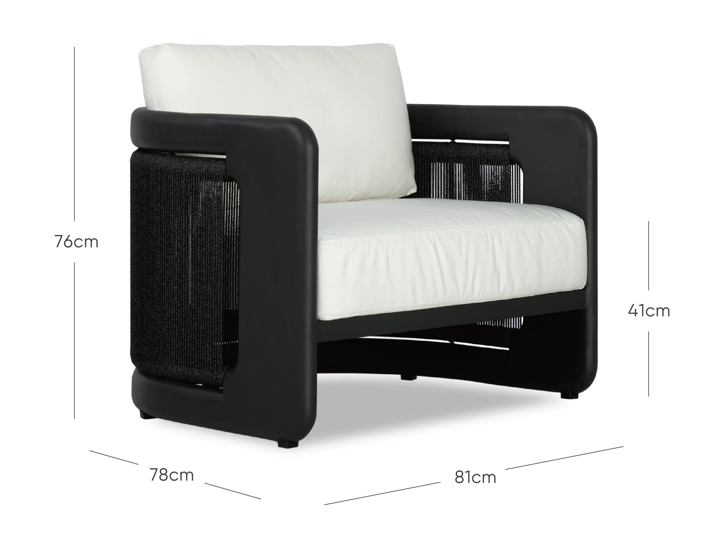 Le coussin d'assise est composé d'une mousse à cellules ouvertes enveloppée de Dacron, ce qui permet à l'eau de circuler et de s'écouler. Le coussin de dossier est garni d'un mélange de mousse, de polyester et de Dacron pour conserver sa forme au fil du temps.
