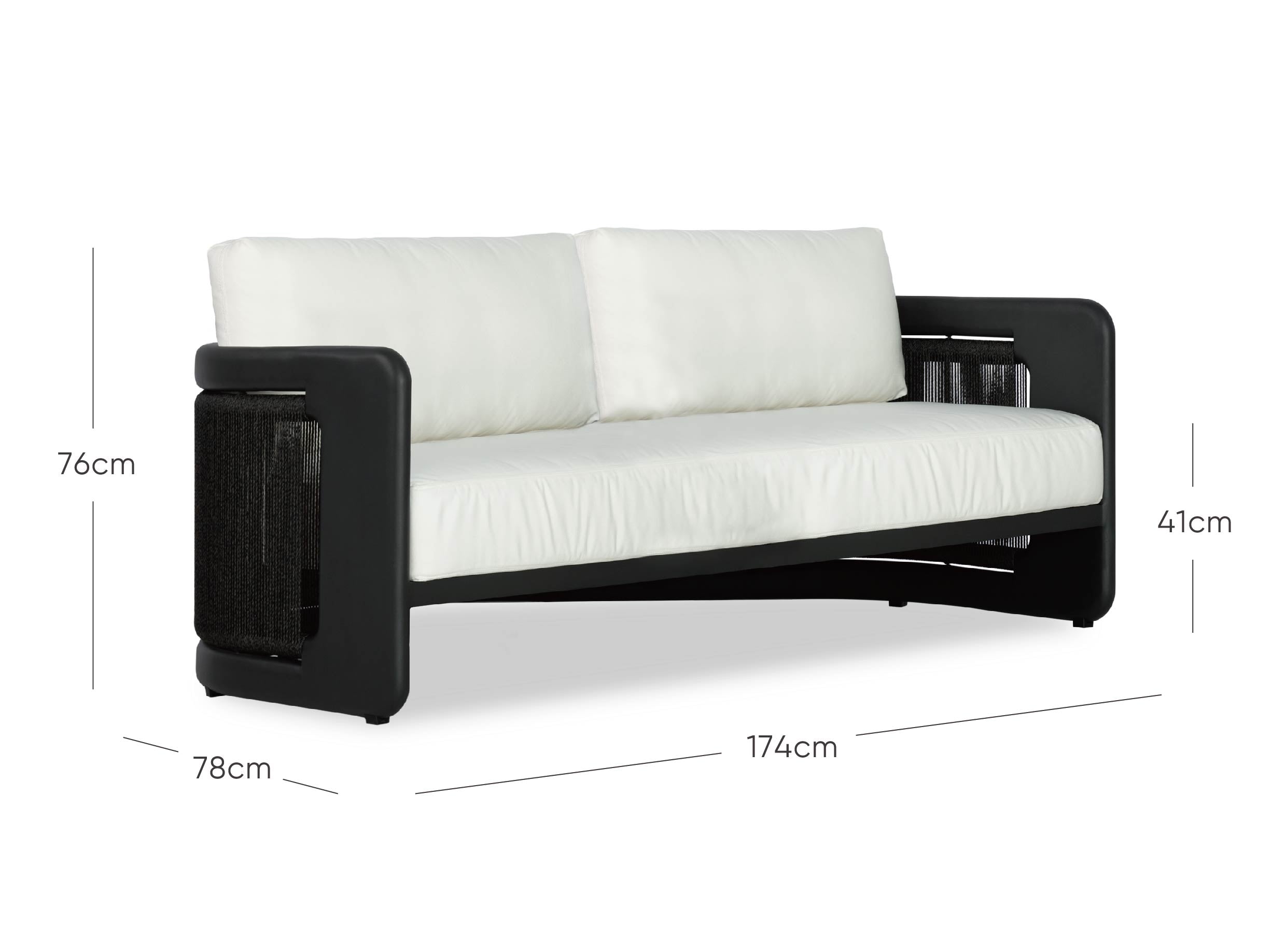 Le coussin d'assise est composé d'une mousse à cellules ouvertes enveloppée de Dacron, ce qui permet à l'eau de circuler et de s'écouler. Le coussin de dossier est garni d'un mélange de mousse, de polyester et de Dacron pour conserver sa forme au fil du temps.