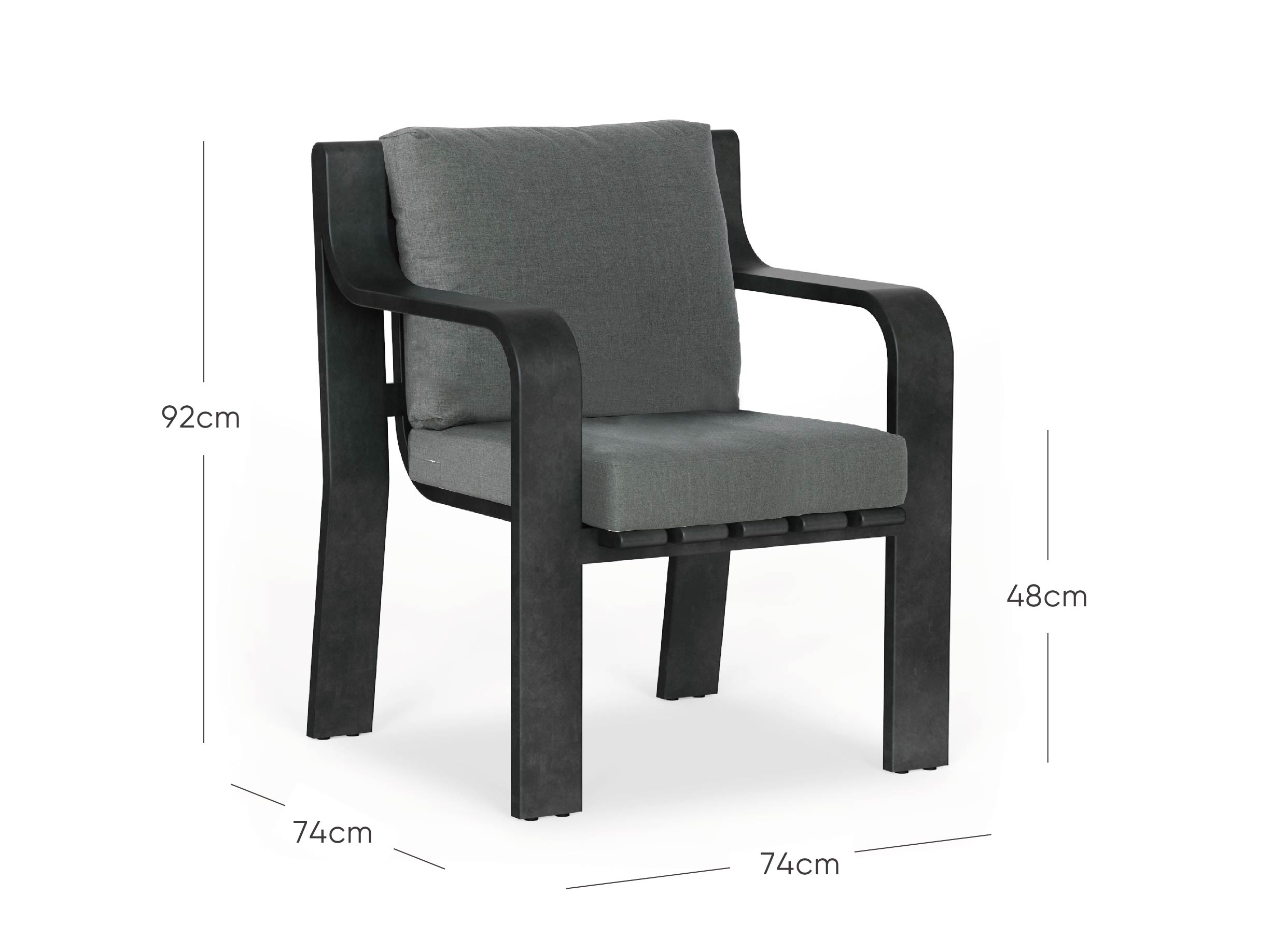 Le coussin d'assise est composé d'une mousse à cellules ouvertes enveloppée de Dacron, ce qui permet à l'eau de circuler et de s'écouler. Le coussin de dossier est garni d'un mélange de mousse, de polyester et de Dacron pour conserver sa forme au fil du temps.