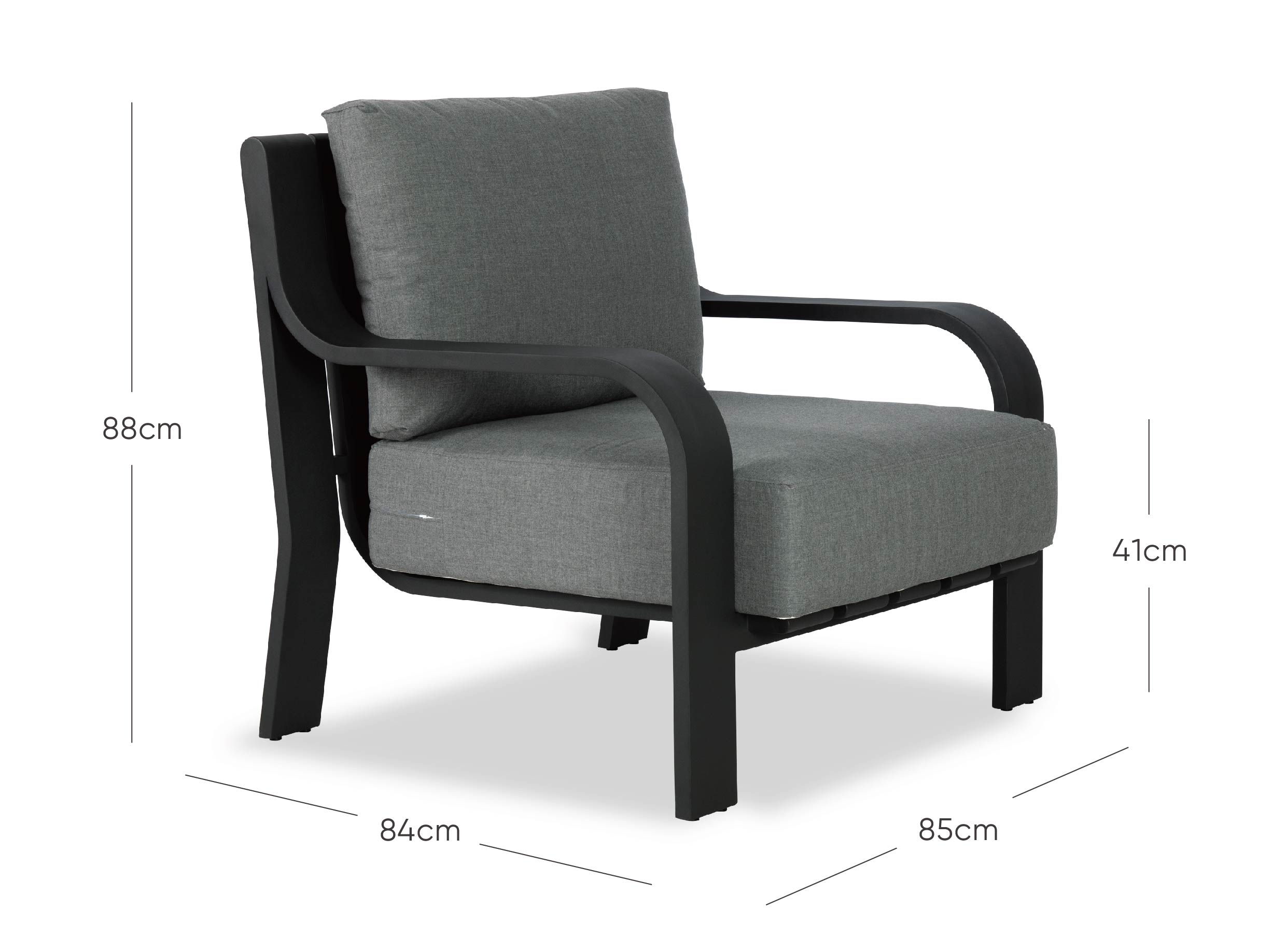Le coussin d'assise est composé d'une mousse à cellules ouvertes enveloppée de Dacron, ce qui permet à l'eau de circuler et de s'écouler. Le coussin de dossier est garni d'un mélange de mousse, de polyester et de Dacron pour conserver sa forme au fil du temps.