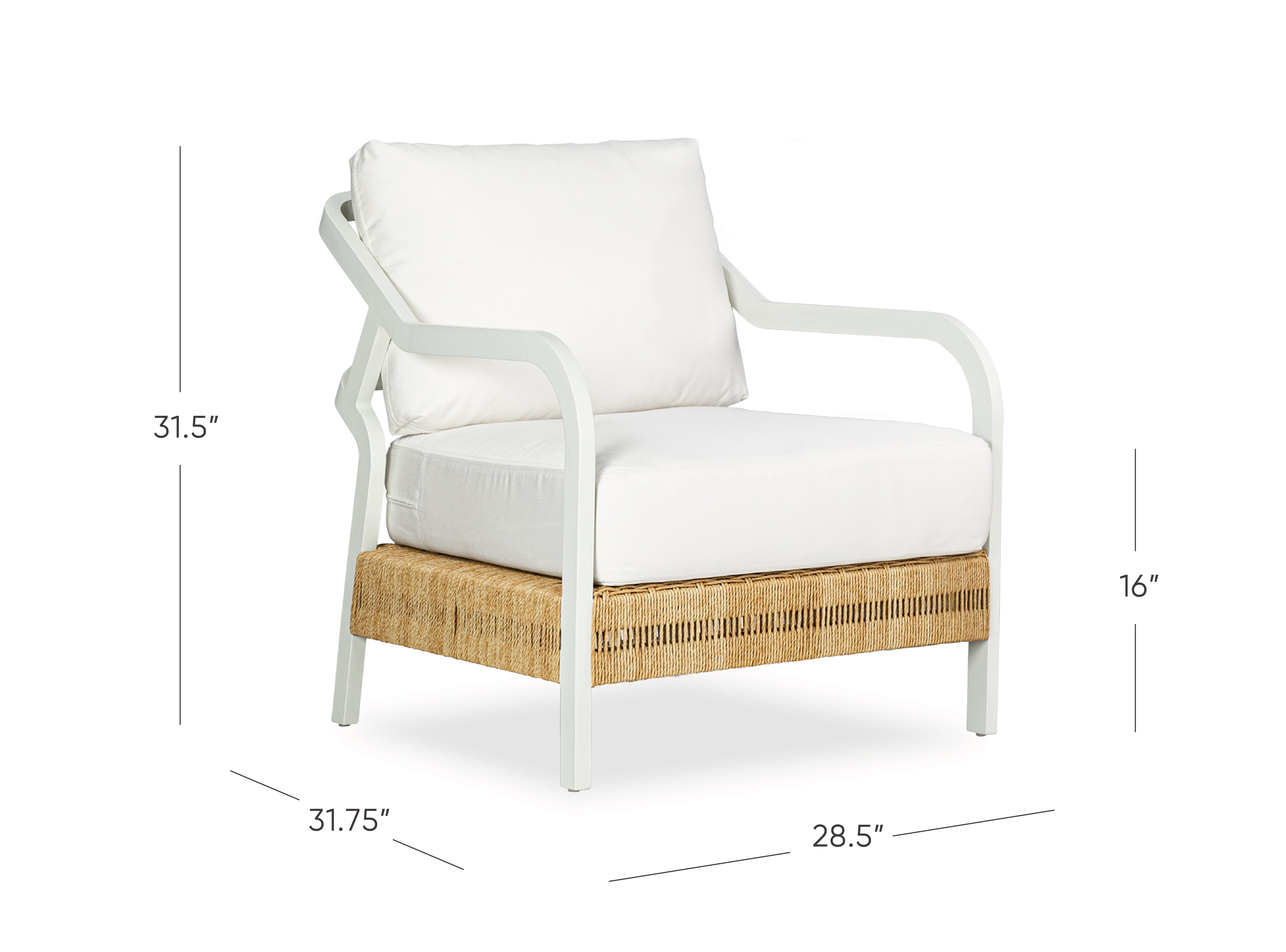 Seat cushion is made with an Open Cell Foam wrapped in Dacron. This allows water to flow through and drain. The back cushion is filled with a Foam, Poly, and Dacron blend to maintain shape over time.