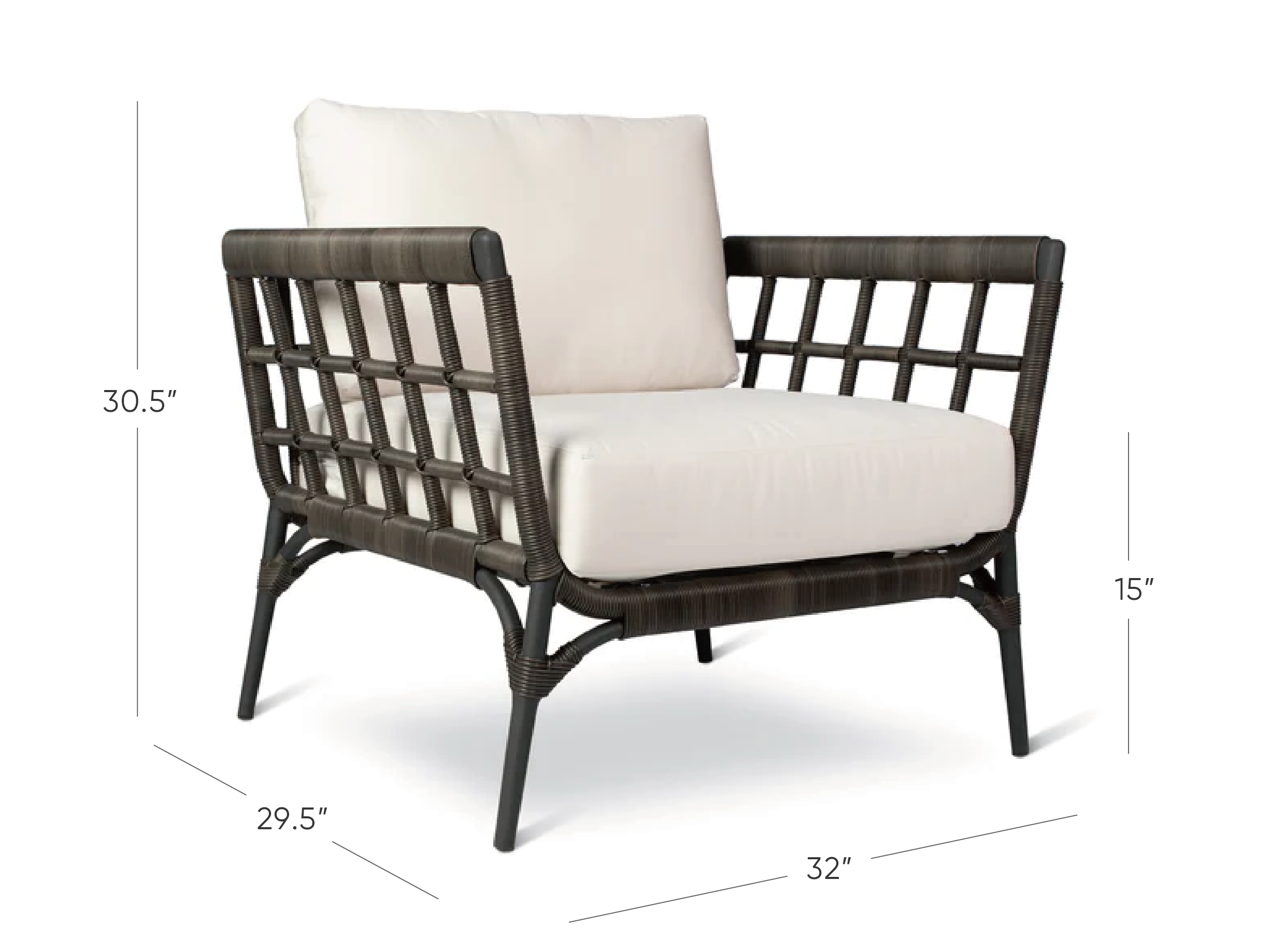 Seat cushion is made with an Open Cell Foam wrapped in Dacron. This allows water to flow through and drain. The back cushion is filled with a Foam, Poly, and Dacron blend to maintain shape over time.