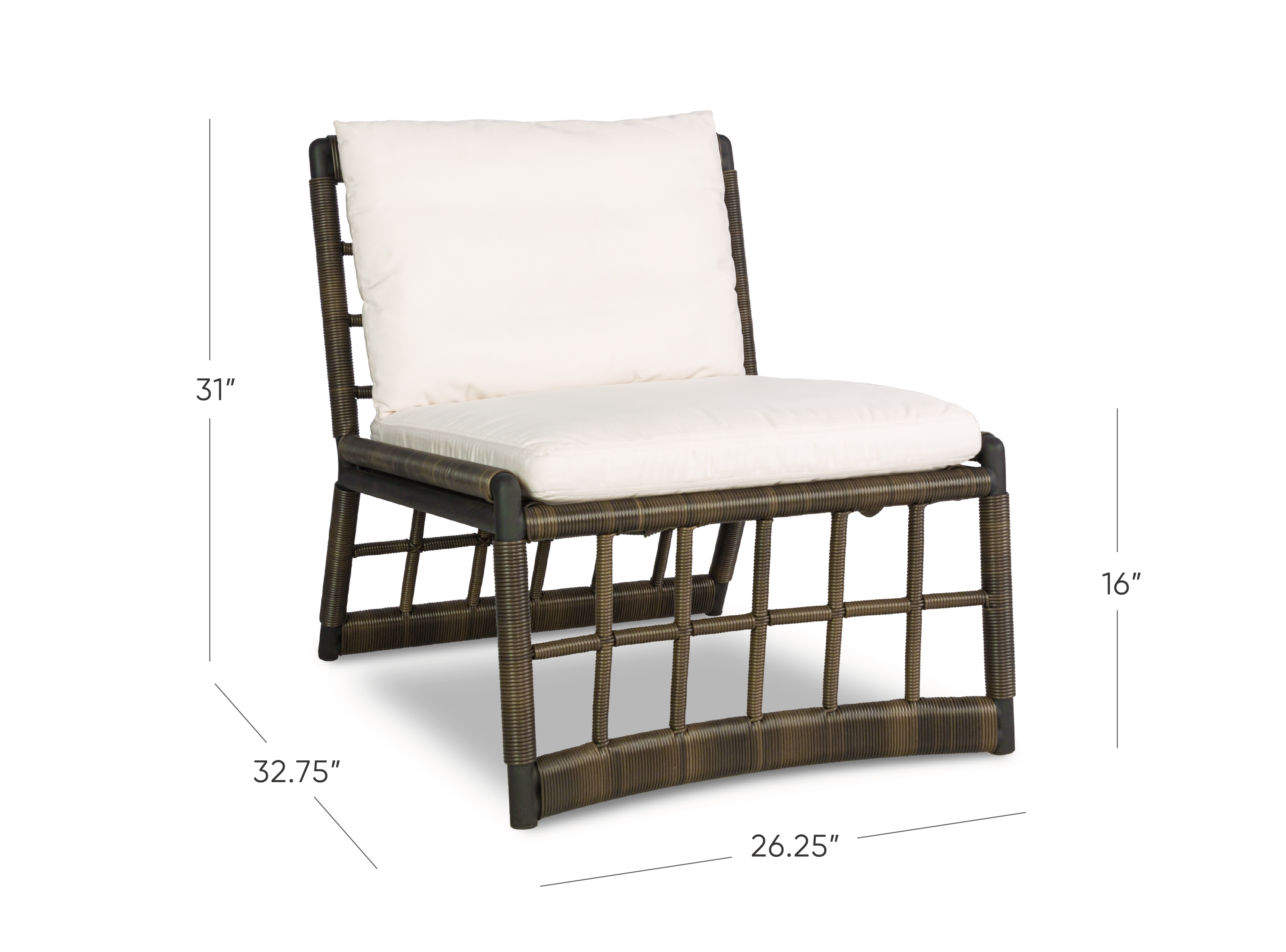 Seat cushion is made with an Open Cell Foam wrapped in Dacron. This allows water to flow through and drain. The back cushion is filled with a Foam, Poly, and Dacron blend to maintain shape over time.