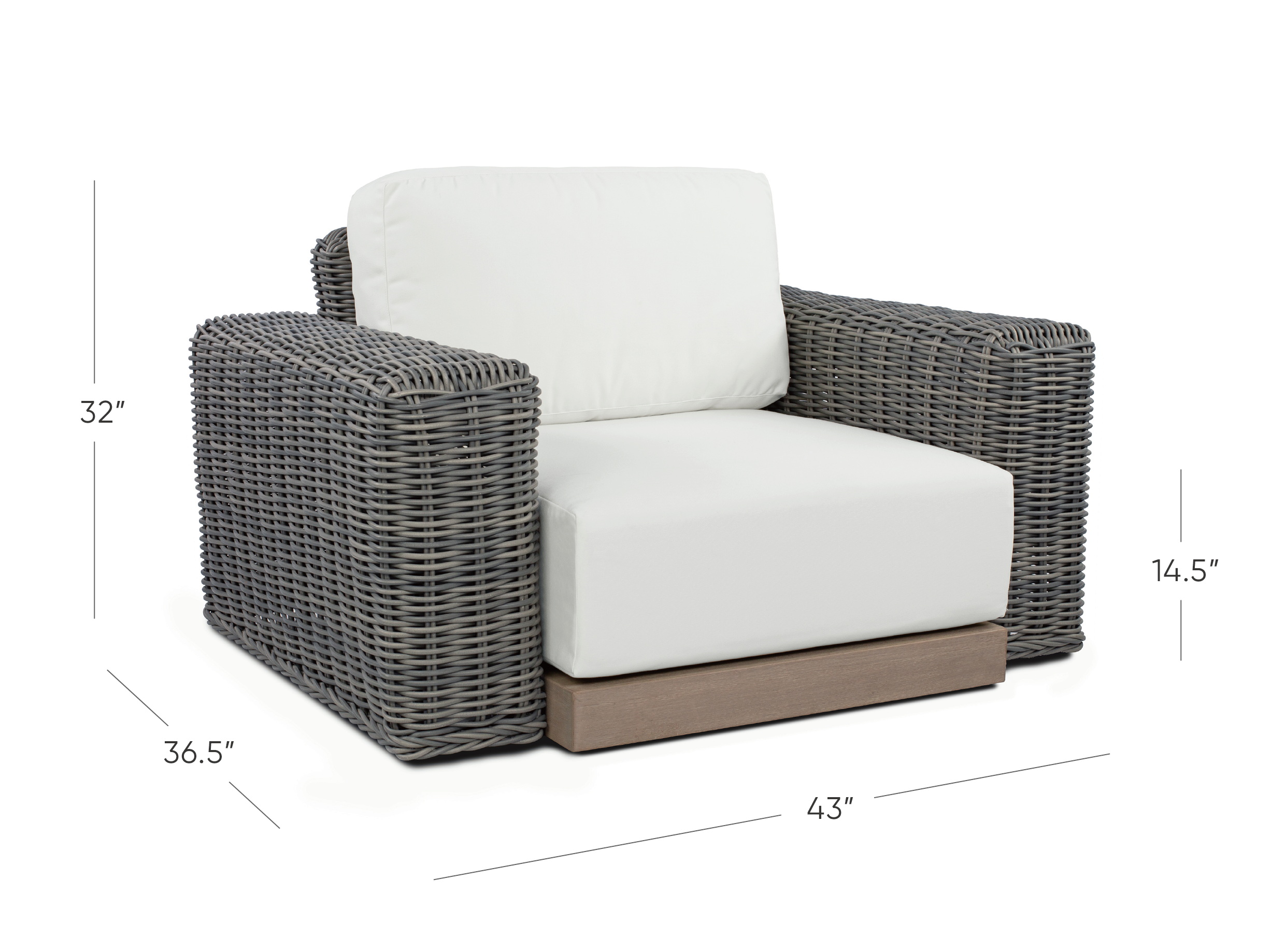 Seat cushion is made with an Open Cell Foam wrapped in Dacron. This allows water to flow through and drain. The back cushion is filled with a Foam, Poly, and Dacron blend to maintain shape over time.