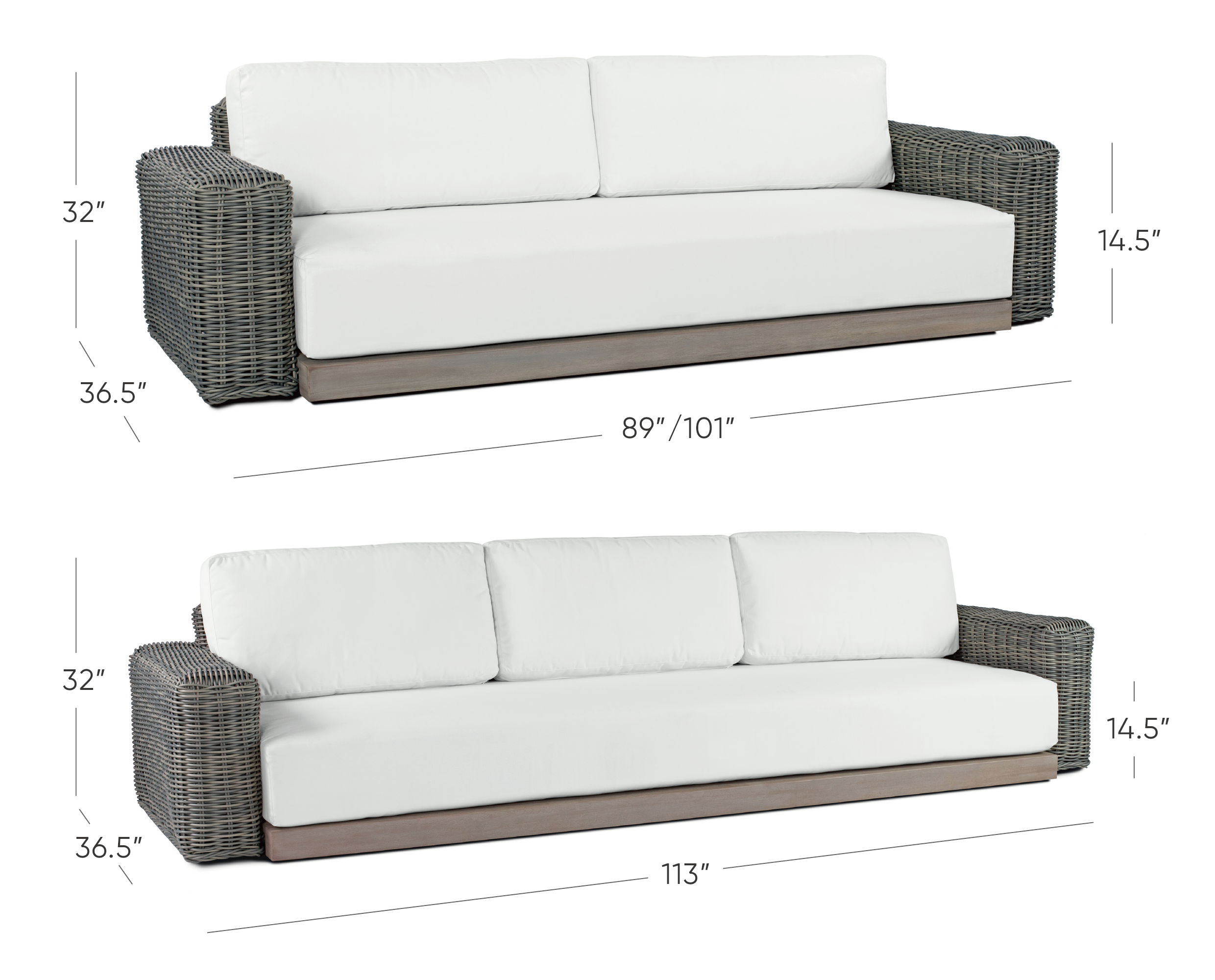 Seat cushion is made with an Open Cell Foam wrapped in Dacron. This allows water to flow through and drain. The back cushion is filled with a Foam, Poly, and Dacron blend to maintain shape over time.