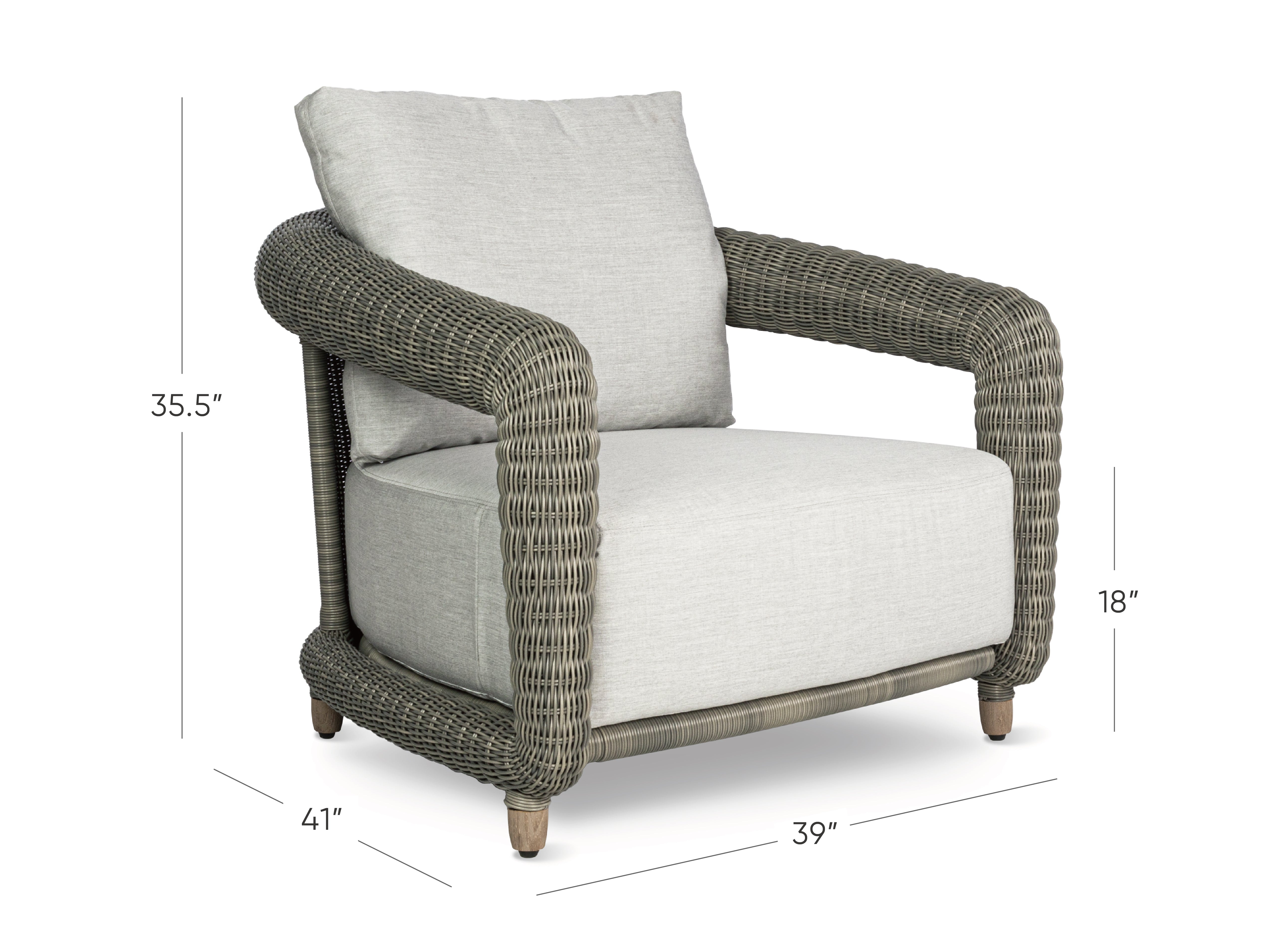 Seat cushion is made with an Open Cell Foam wrapped in Dacron. This allows water to flow through and drain. The back cushion is filled with a Foam, Poly, and Dacron blend to maintain shape over time.
