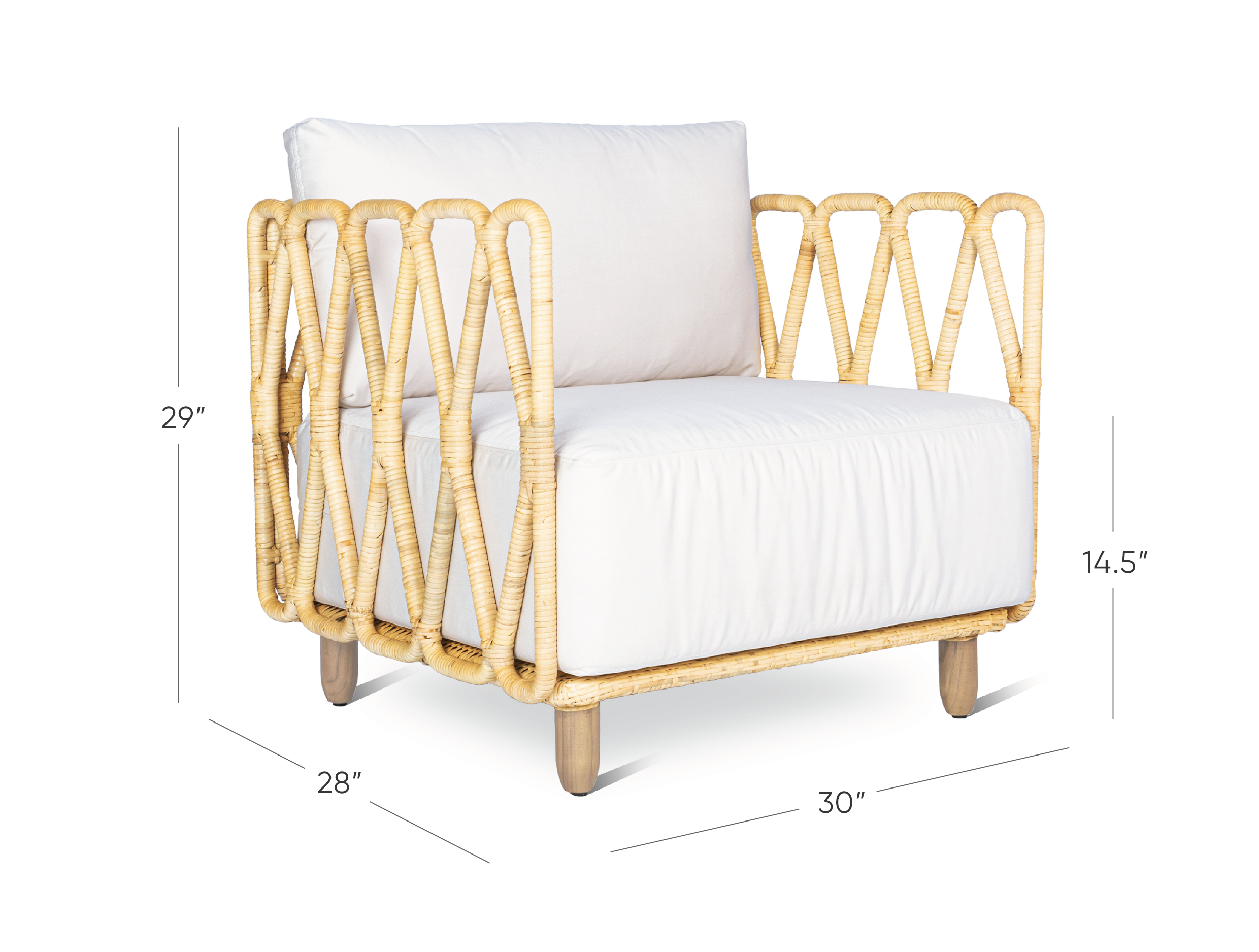 Seat cushion is made with an Open Cell Foam wrapped in Dacron. This allows water to flow through and drain. The back cushion is filled with a Foam, Poly, and Dacron blend to maintain shape over time.