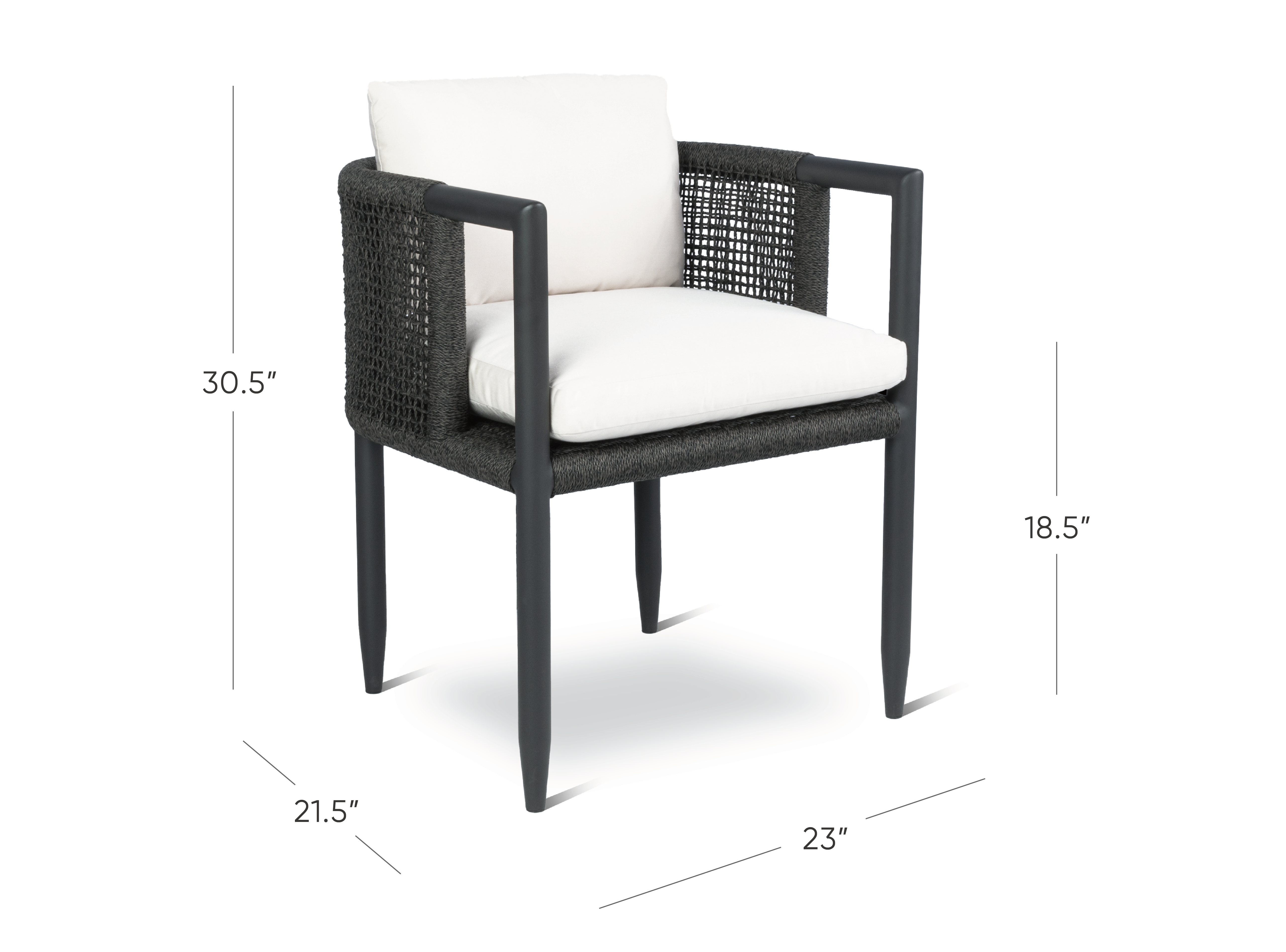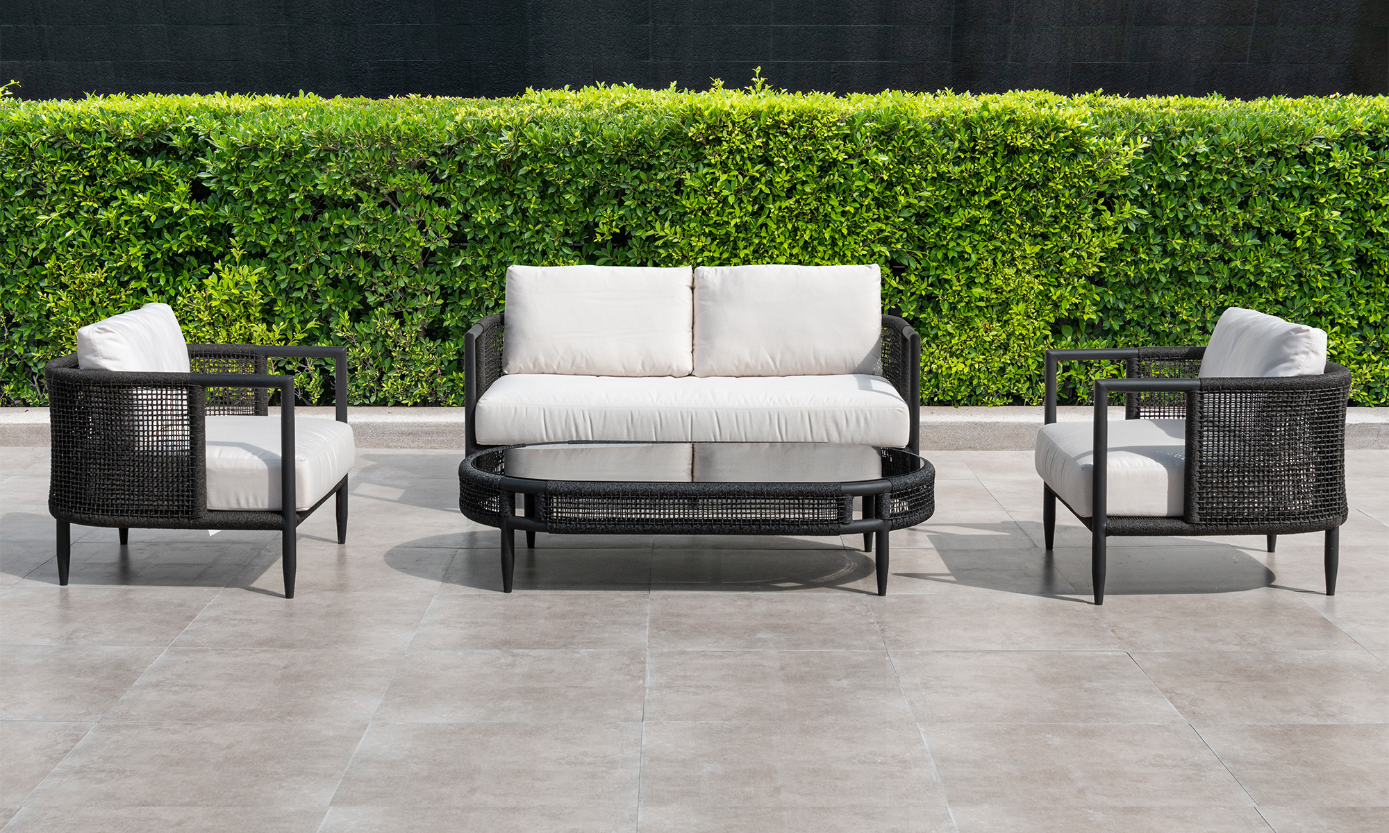 Seat cushion is made with an Open Cell Foam wrapped in Dacron. This allows water to flow through and drain. The back cushion is filled with a Foam, Poly, and Dacron blend to maintain shape over time.
