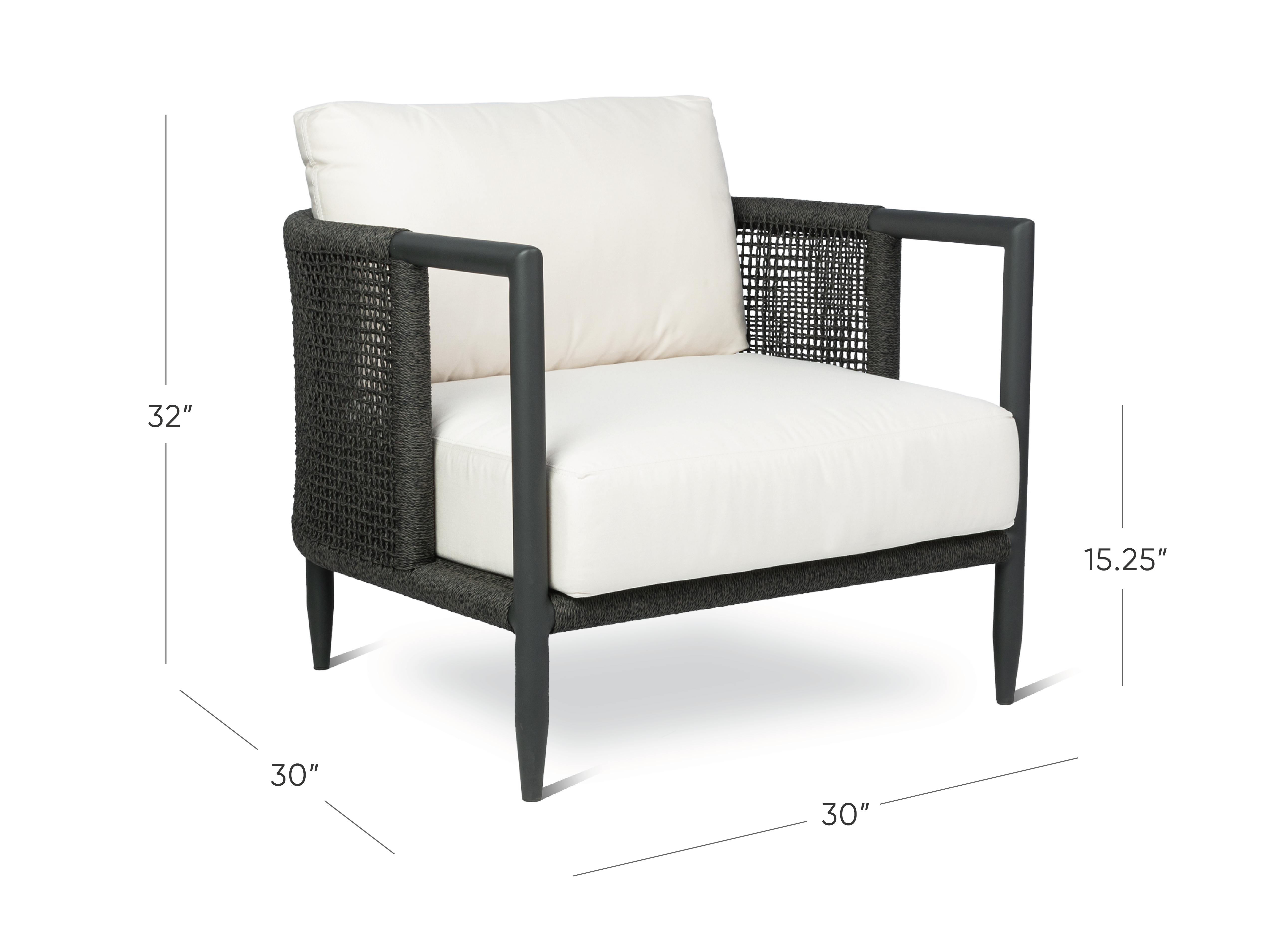 Seat cushion is made with an Open Cell Foam wrapped in Dacron. This allows water to flow through and drain. The back cushion is filled with a Foam, Poly, and Dacron blend to maintain shape over time.