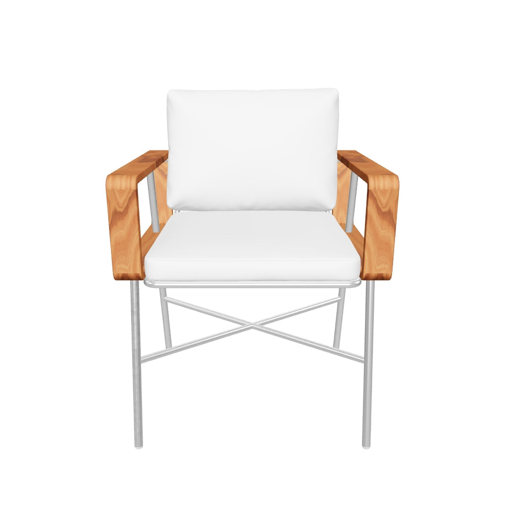 Seat cushion is made with an Open Cell Foam wrapped in Dacron. This allows water to flow through and drain. The back cushion is filled with a Foam, Poly, and Dacron blend to maintain shape over time.