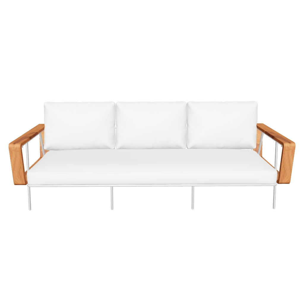 Seat cushion is made with an Open Cell Foam wrapped in Dacron. This allows water to flow through and drain. The back cushion is filled with a Foam, Poly, and Dacron blend to maintain shape over time.
