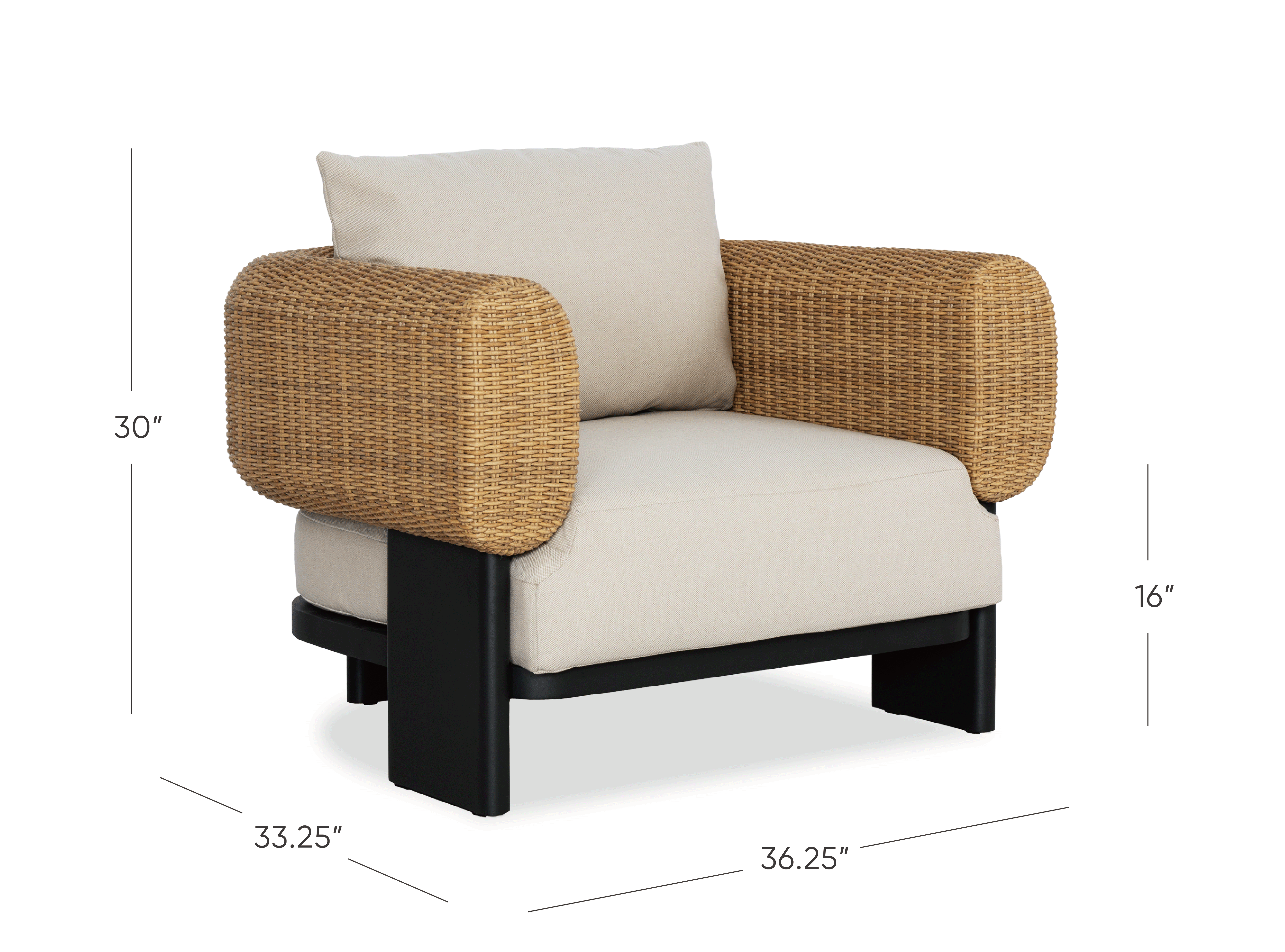 Seat cushion is made with an Open Cell Foam wrapped in Dacron. This allows water to flow through and drain. The back cushion is filled with a Foam, Poly, and Dacron blend to maintain shape over time.