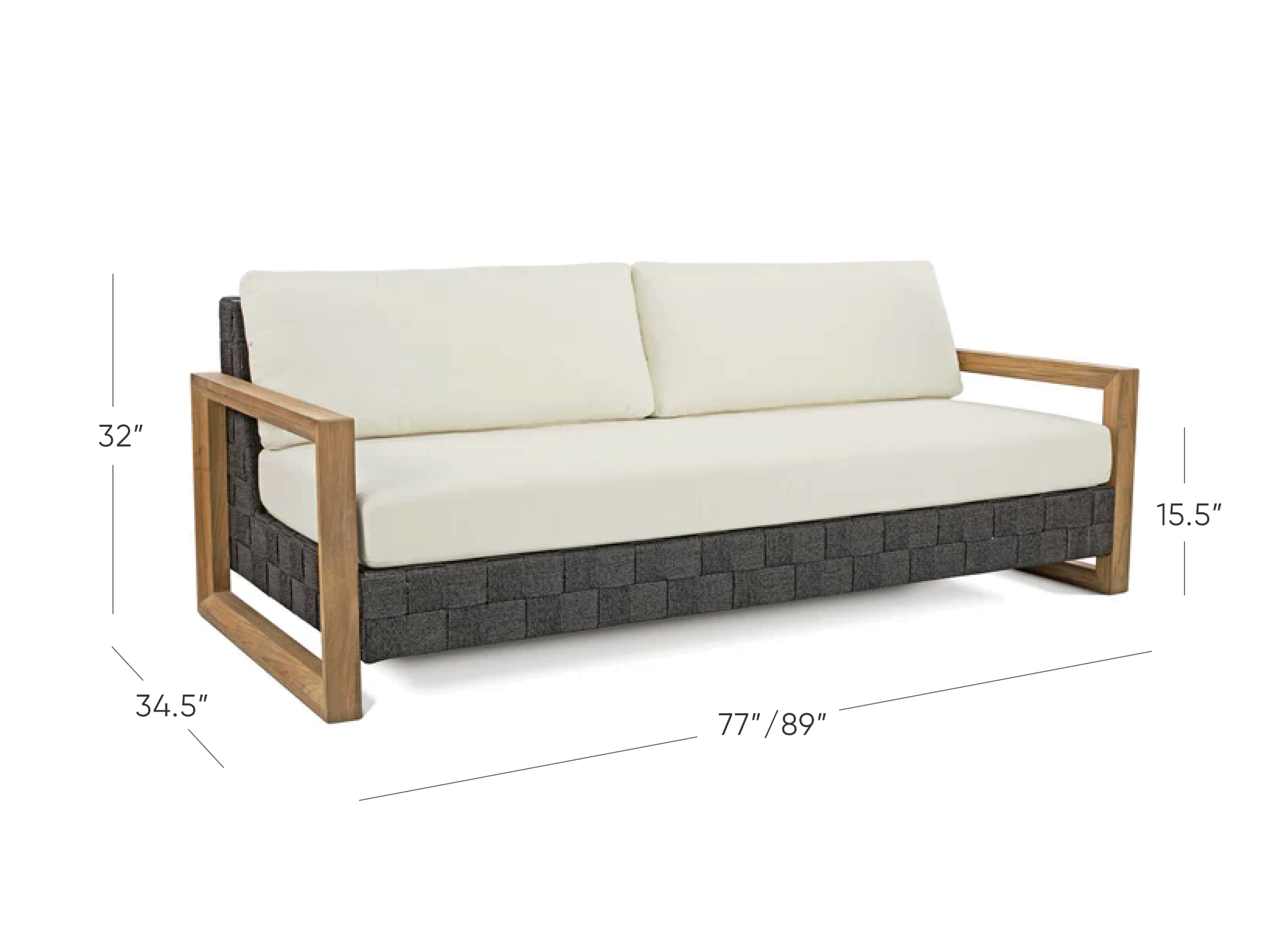 Seat cushion is made with an Open Cell Foam wrapped in Dacron. This allows water to flow through and drain. The back cushion is filled with a Foam, Poly, and Dacron blend to maintain shape over time.