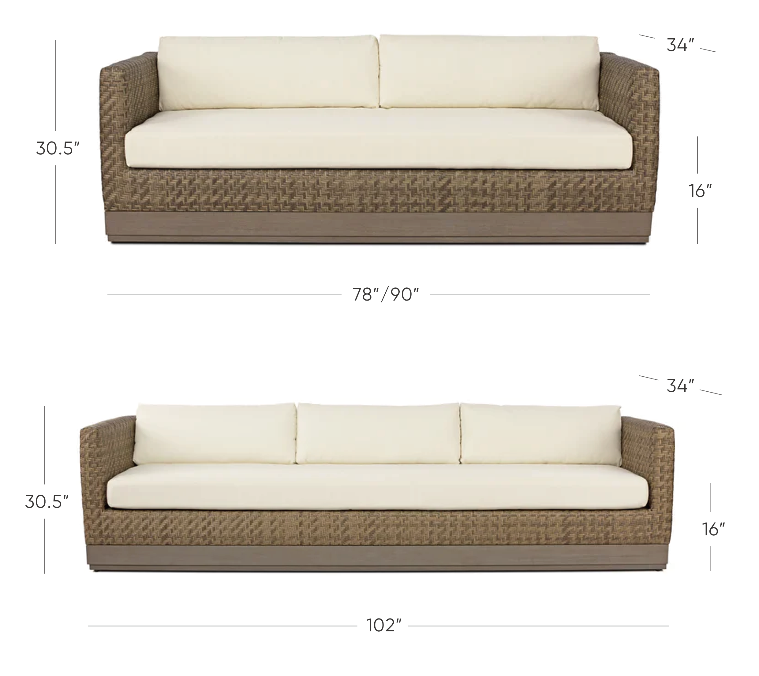 Seat cushion is made with an Open Cell Foam wrapped in Dacron. This allows water to flow through and drain. The back cushion is filled with a Foam, Poly, and Dacron blend to maintain shape over time.