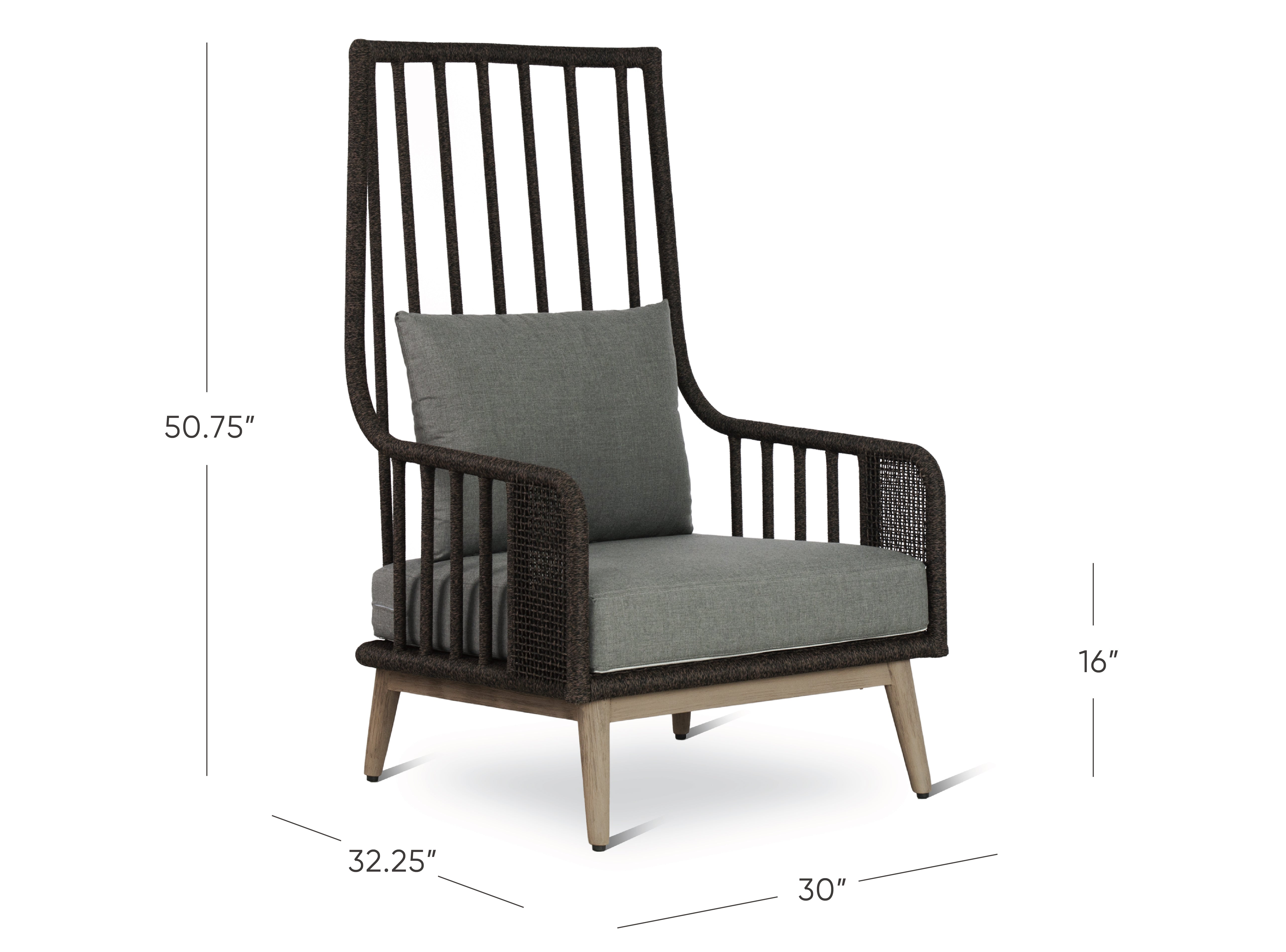 Seat cushion is made with an Open Cell Foam wrapped in Dacron. This allows water to flow through and drain. The back cushion is filled with a Foam, Poly, and Dacron blend to maintain shape over time.