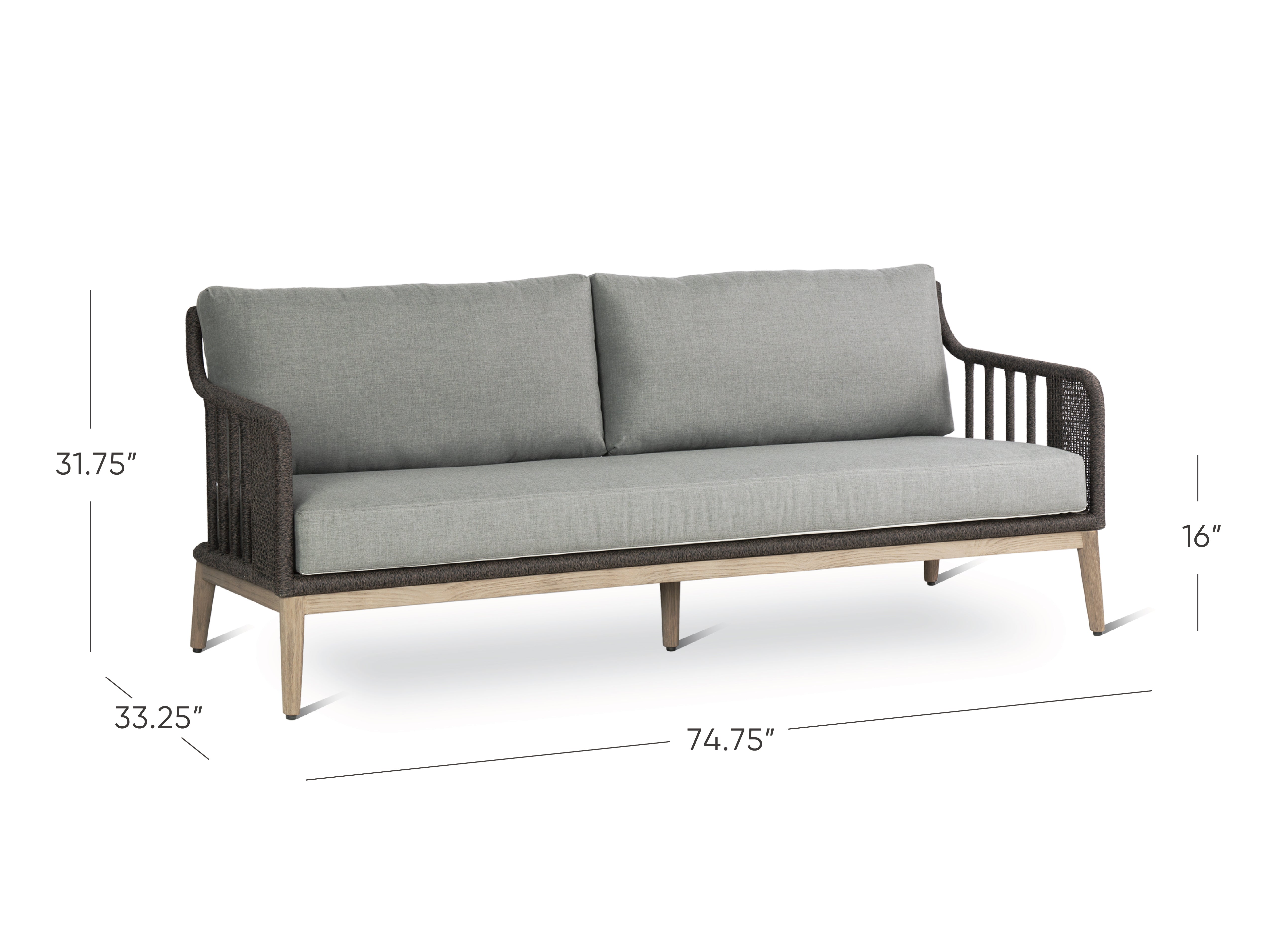 Seat cushion is made with an Open Cell Foam wrapped in Dacron. This allows water to flow through and drain. The back cushion is filled with a Foam, Poly, and Dacron blend to maintain shape over time.