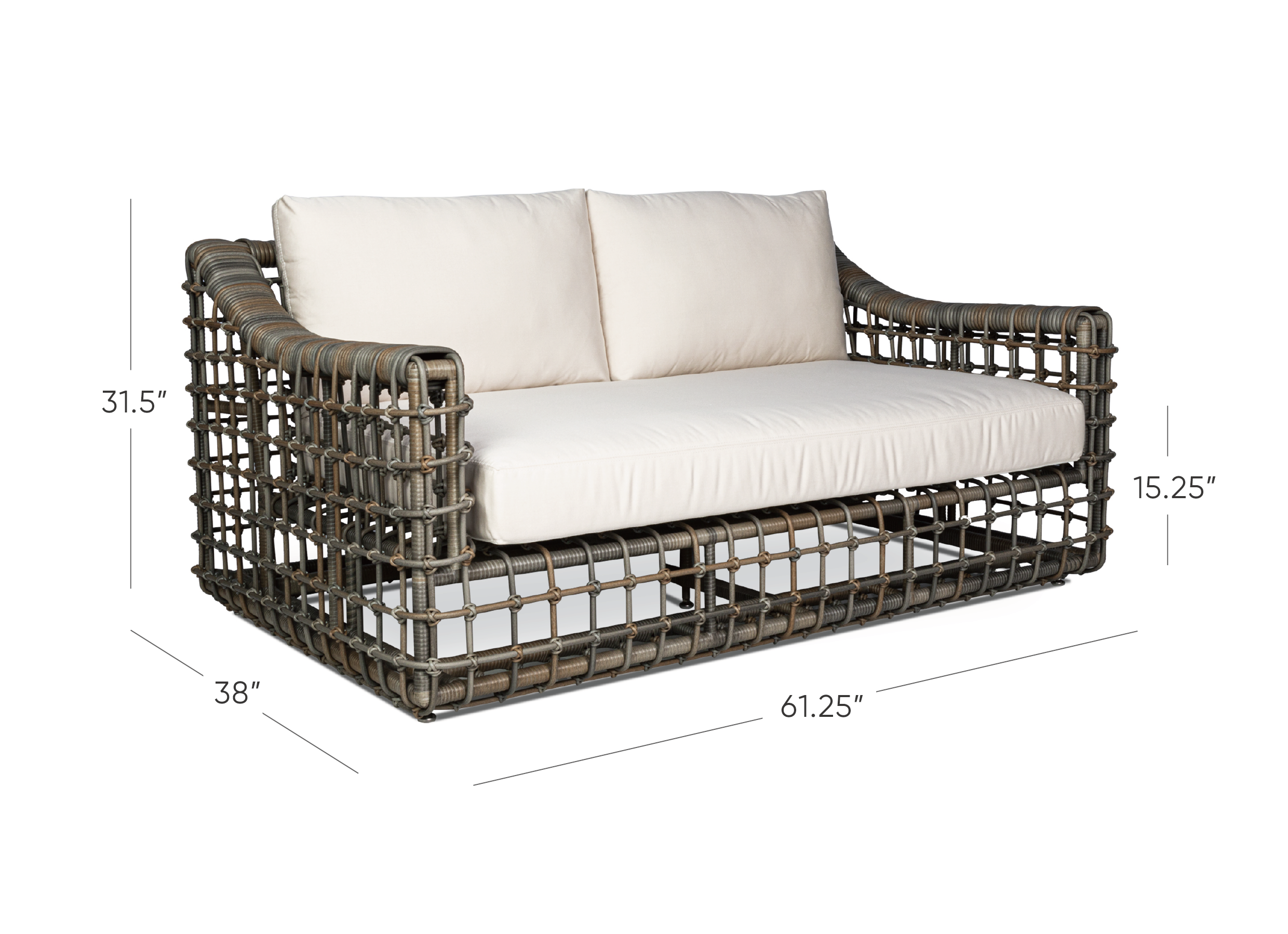 Seat cushion is made with an Open Cell Foam wrapped in Dacron. This allows water to flow through and drain. The back cushion is filled with a Foam, Poly, and Dacron blend to maintain shape over time.