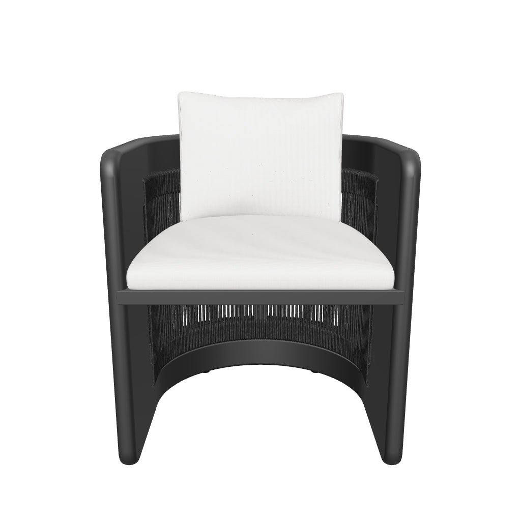 Seat cushion is made with an Open Cell Foam wrapped in Dacron. This allows water to flow through and drain. The back cushion is filled with a Foam, Poly, and Dacron blend to maintain shape over time.