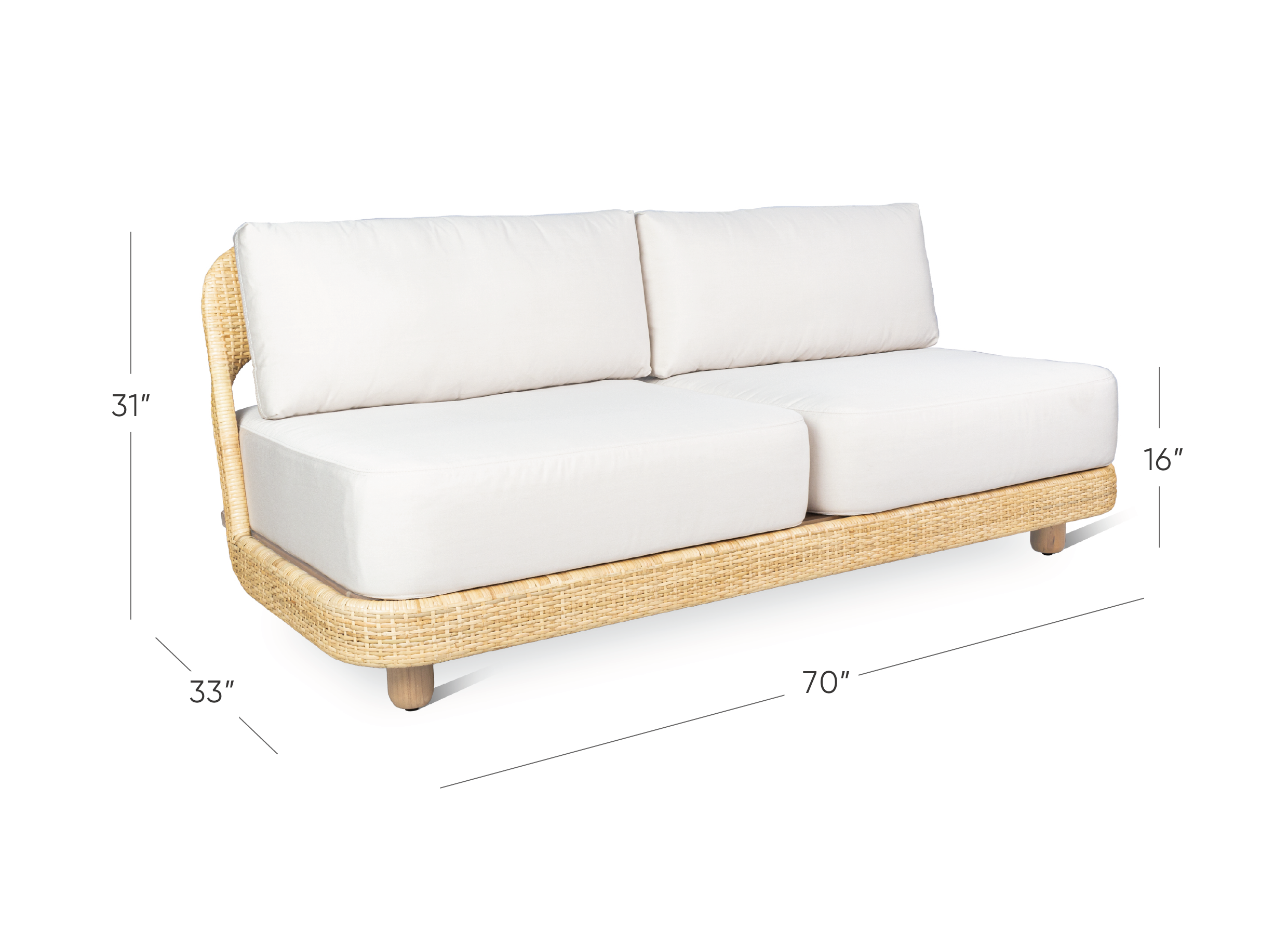 Seat cushion is made with an Open Cell Foam wrapped in Dacron. This allows water to flow through and drain. The back cushion is filled with a Foam, Poly, and Dacron blend to maintain shape over time.