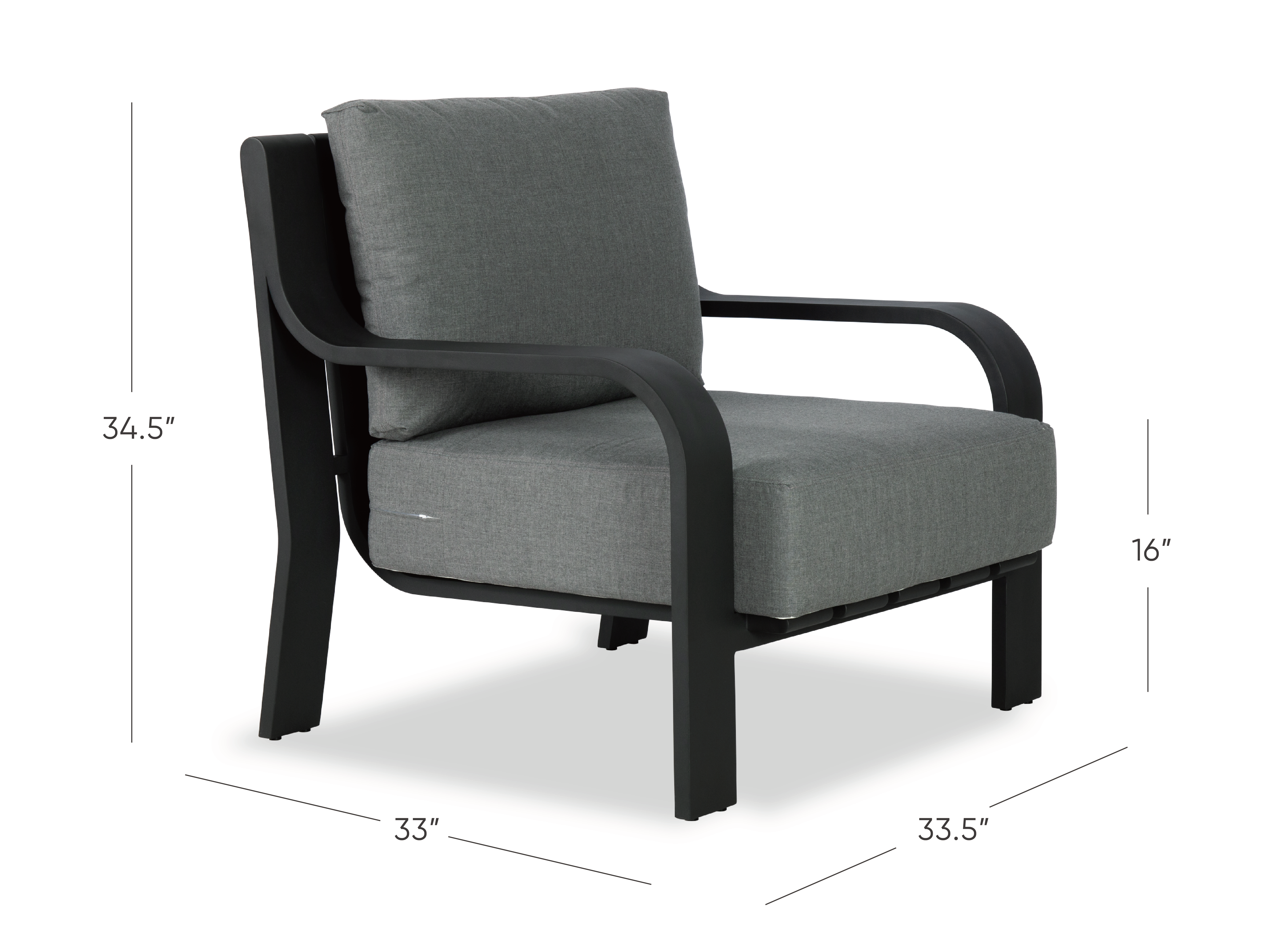 Seat cushion is made with an Open Cell Foam wrapped in Dacron. This allows water to flow through and drain. The back cushion is filled with a Foam, Poly, and Dacron blend to maintain shape over time.